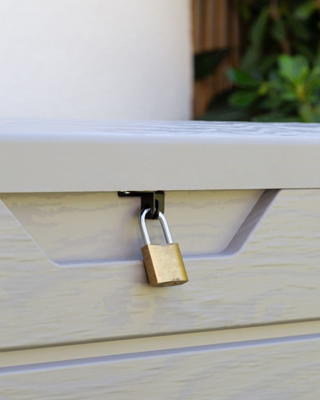 • Kilit takılabilen kapak tasarımı, depolanan eşyalar için ek güvenlik sağlar (asma kilit dahil değildir).