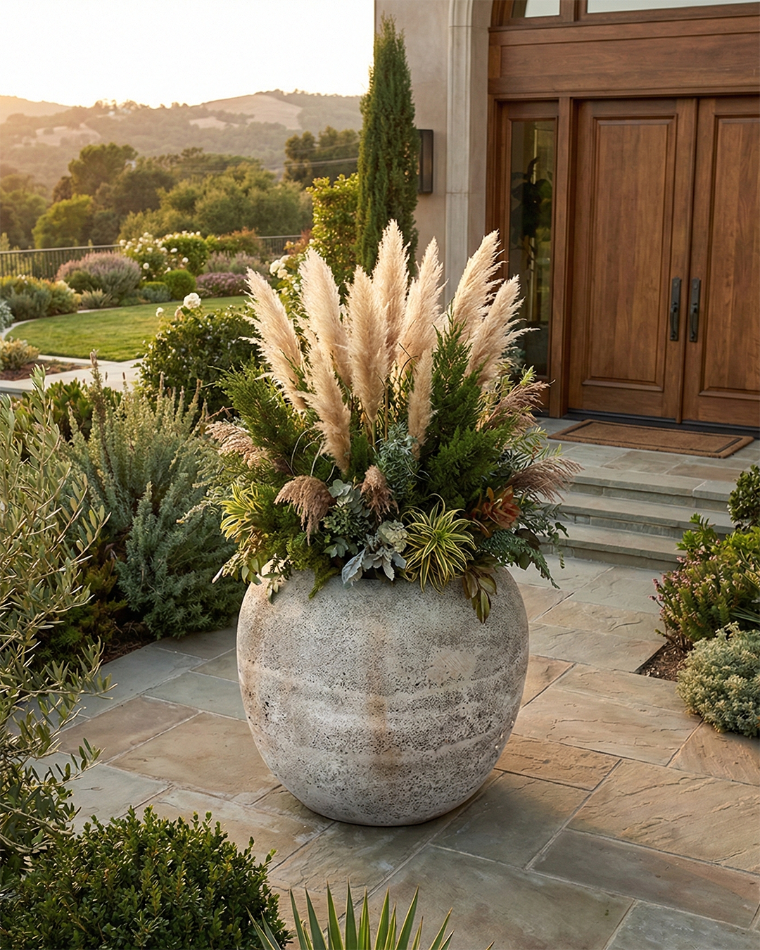 Dayanıklı beton/kompozit gibi yapı malzemesi ile üretilmiş gövdesi dış mekân koşullarına karşı direnç gösterir ve ağırlığını uzun vadede koruyarak dekoratif performansı sürdürür.