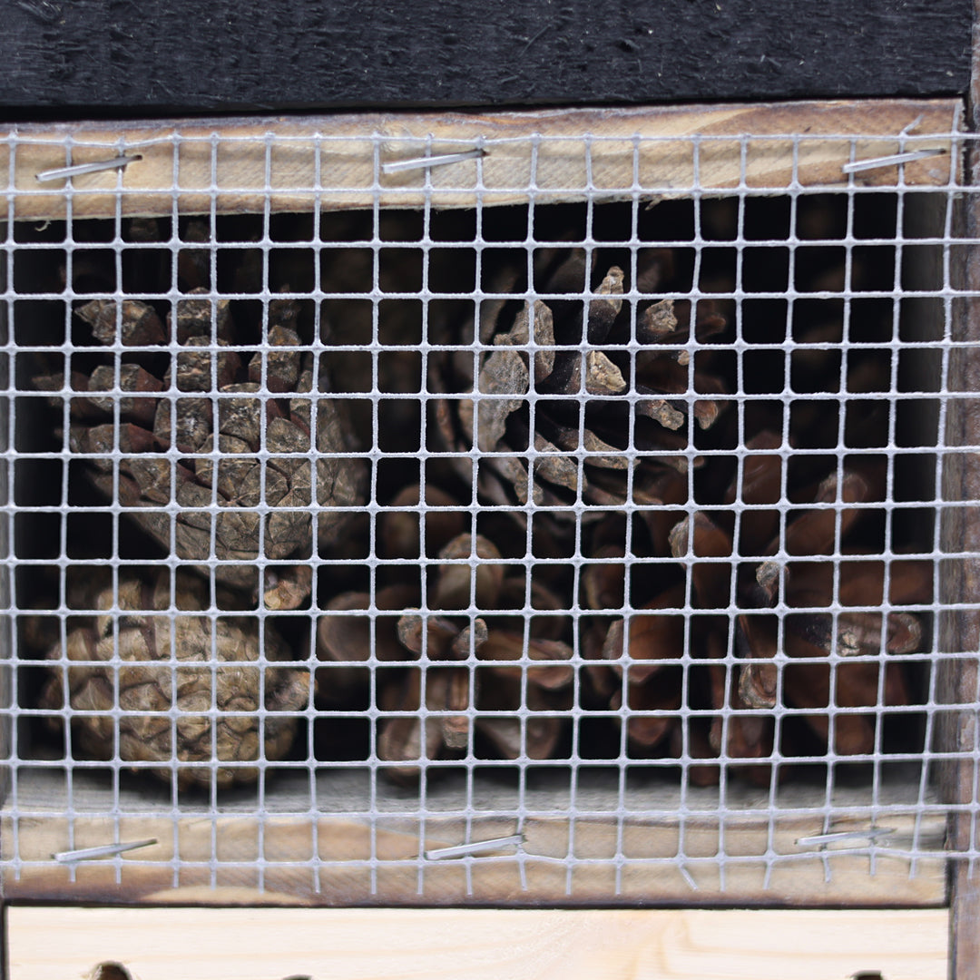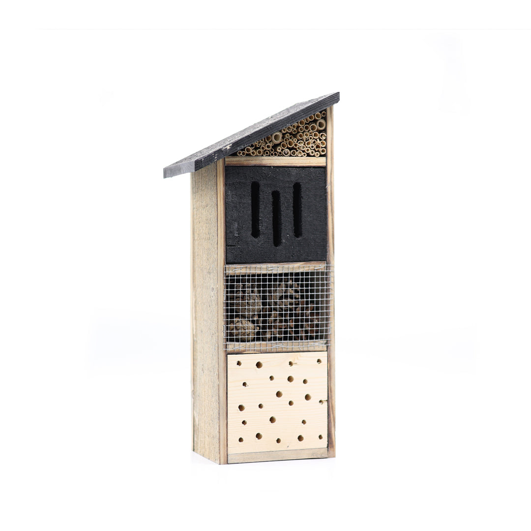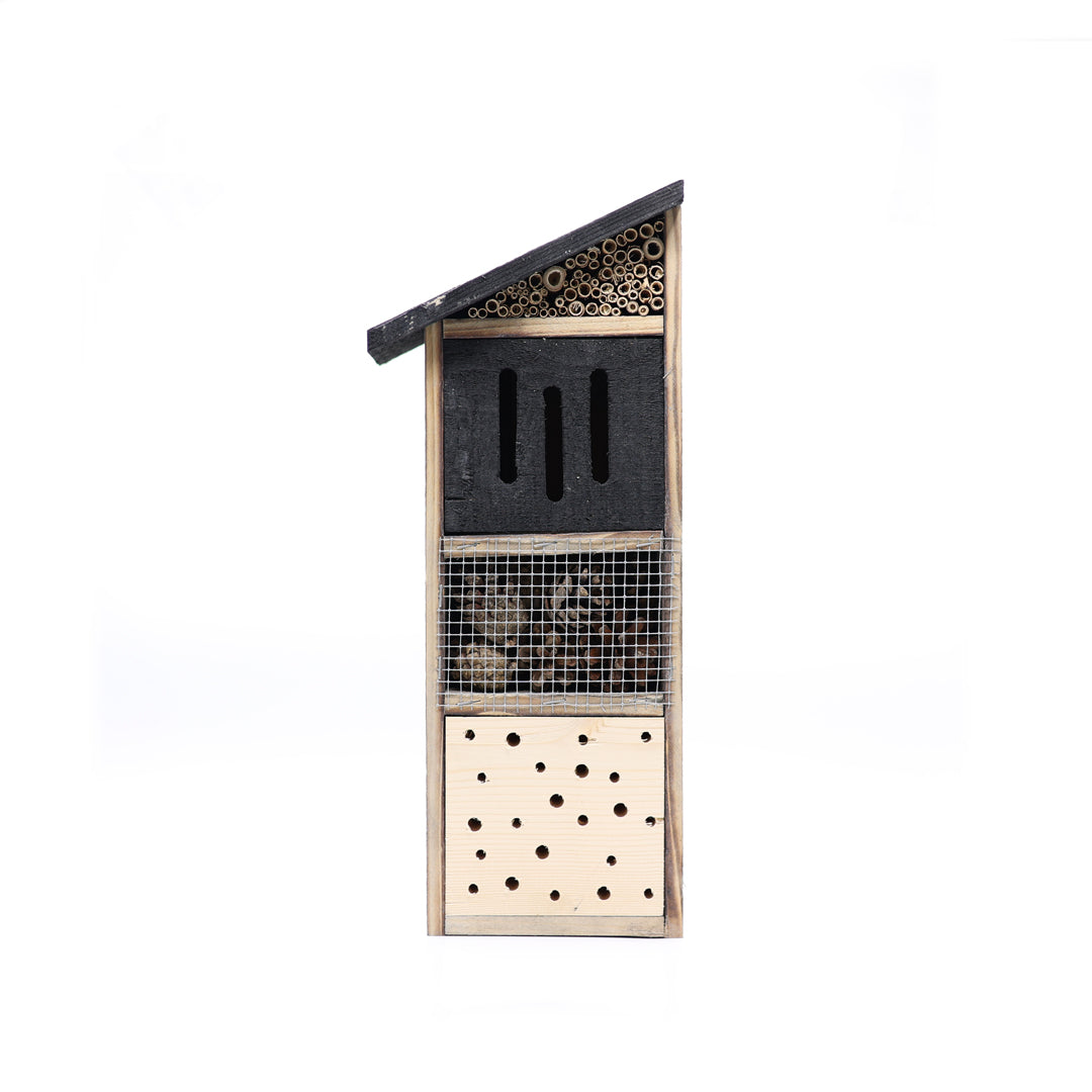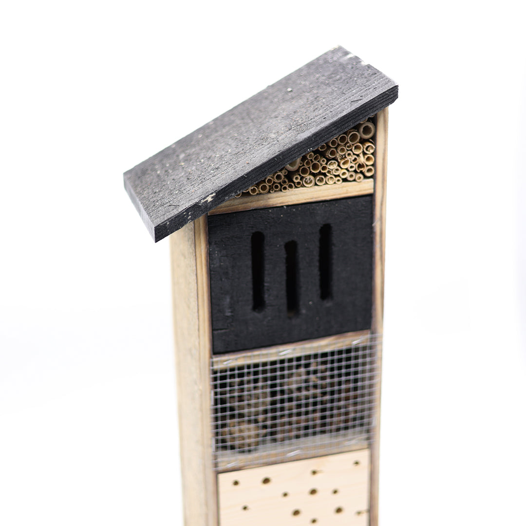 Faydalı böceklerin güvenli şekilde barınabileceği ve kışlayabileceği alanlar oluşturmak amacıyla tasarlanan bu yapı, özellikle doğal yuvalama alanlarının azaldığı kentsel ortamlarda ekosistemi destekleyen bir çözüm sunar. 42 cm yükseklik, 17 cm derinlik ve 12 cm genişlik ölçüleri, balkonlar, teraslar ve şehir bahçelerinde kolay konumlandırılabilen dengeli bir form oluşturur.
