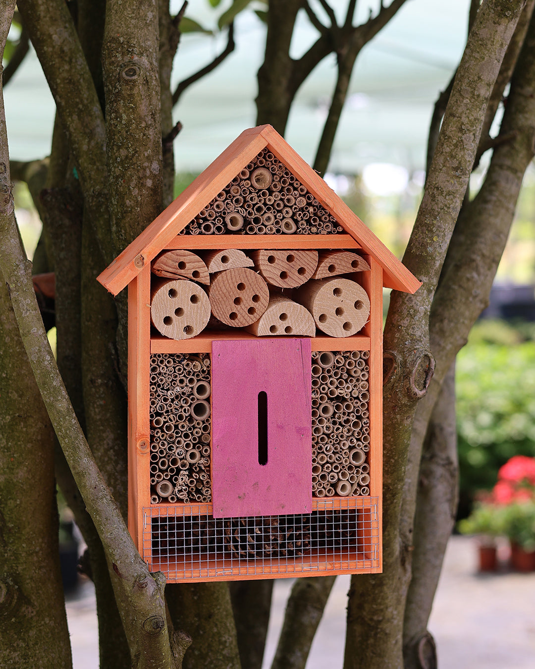 Bu ürün faydalı böcekler için barınma, yuvalama ve kış uykusu alanı sağlayan dekoratif böcek otelidir ve bahçe ekosisteminin sağlıklı işleyişini desteklemek üzere tasarlanmıştır.