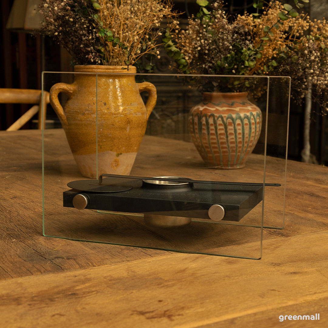 Cam paneller, alevin görünürlüğünü artırırken; metal gövde yapısı, ürüne modern ve sade bir görünüm kazandırır. Bioethanol yakıt ile çalışan sistem, yaşam alanlarında atmosfer oluşturmak isteyen kullanıcılar için pratik ve dekoratif bir çözüm sunar.
