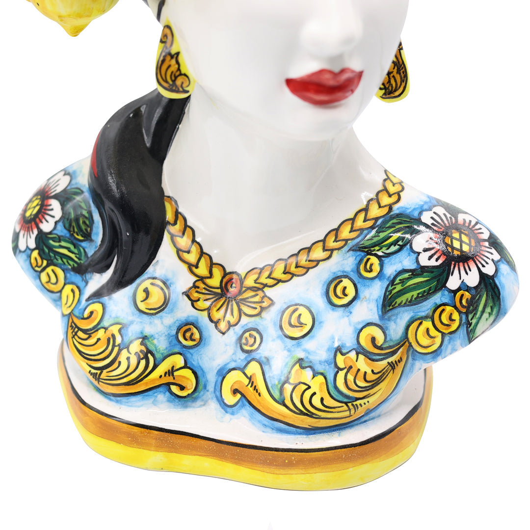 Sanatsal tasarımlı dekoratif büst heykel, yaşam alanlarında güçlü bir görsel odak noktası oluşturur ve sehpa, raf ya da zemin üzerinde sanatsal obje olarak mekânınıza karakter katar.