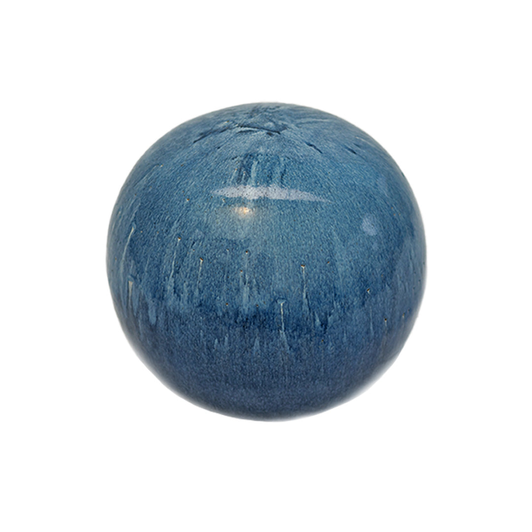 Seramik küresel formu ile yaşam alanında dekoratif obje olarak güçlü bir görsel etki yaratır ve sehpa, raf veya zemin üzerinde dikkat çekici bir dekor tamamlayıcısı olarak kullanılabilir.