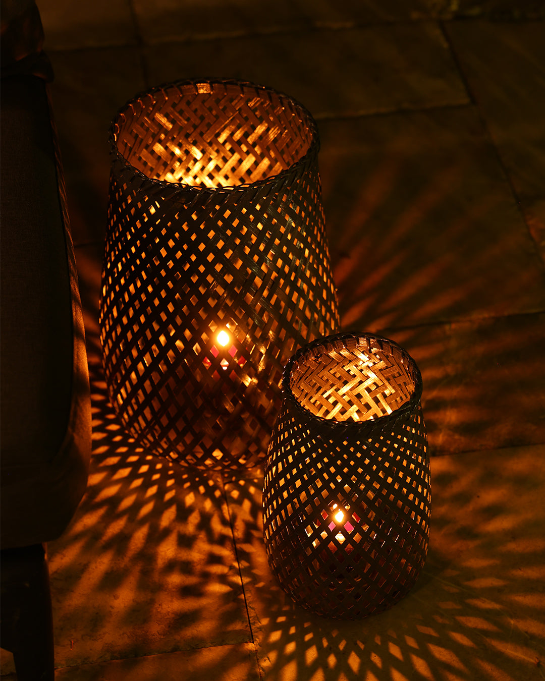 Bu ürün doğal bambu/hasır malzemeden yapılmış küçük boy dekoratif mumluktur ve mum ışığı ile sıcak, huzurlu bir aydınlatma atmosferi oluşturmak üzere tasarlanmıştır.