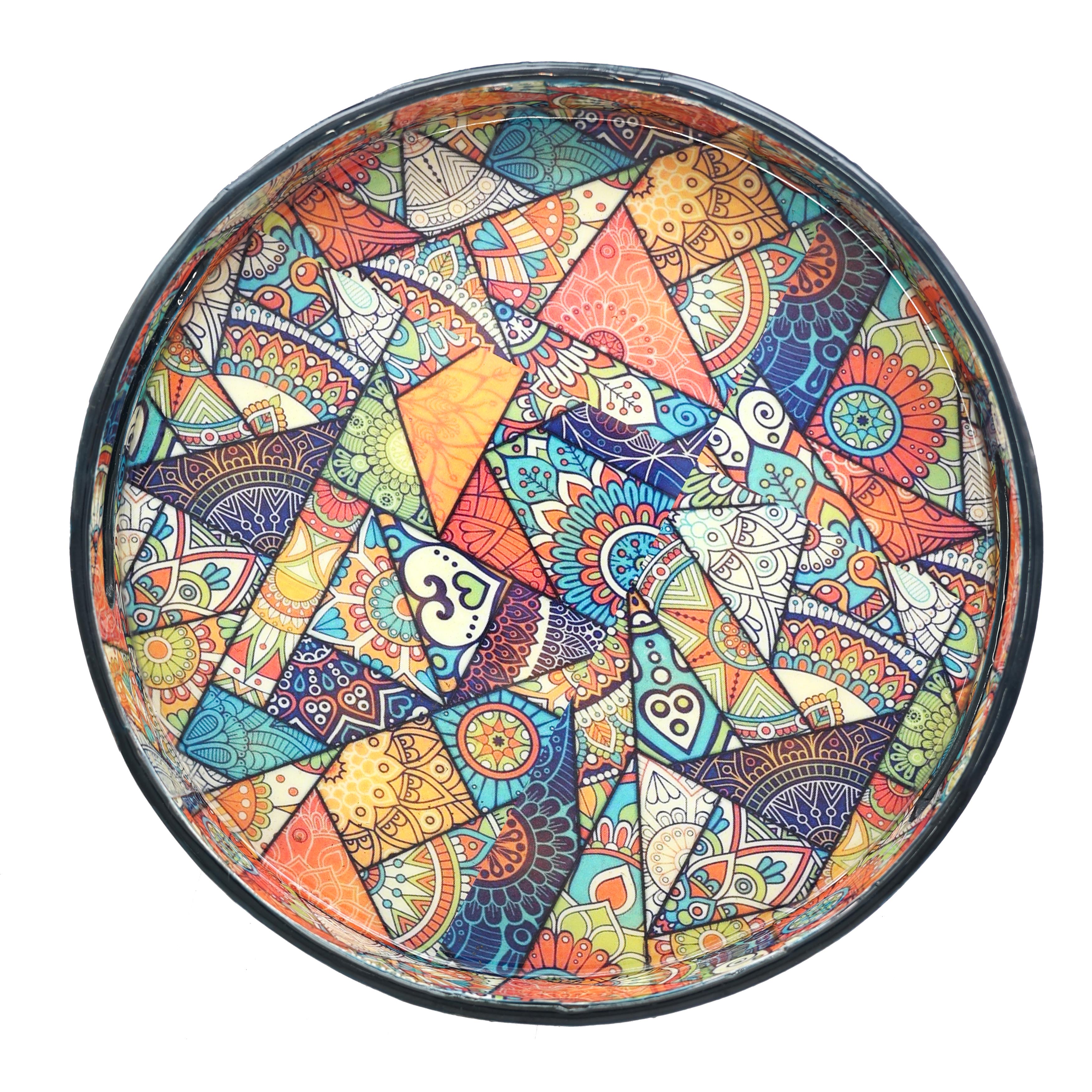Desenli Yuvarlak Ahşap Tepsi Büyük Boy
