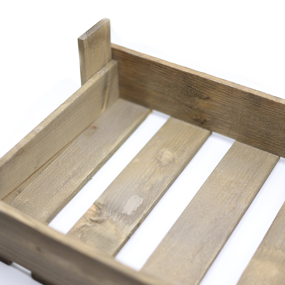 Dikdörtgen formu ve doğal ahşap dokusu ile tasarlanan bu model, dekoratif düzenlemelerde organik ve sade bir görünüm oluşturur. 14 cm yükseklik, düşük profilli bitki düzenlemeleri için dengeli bir yapı sunarak yüzey üzerinde düzenli bir kompozisyon kurulmasına yardımcı olur.