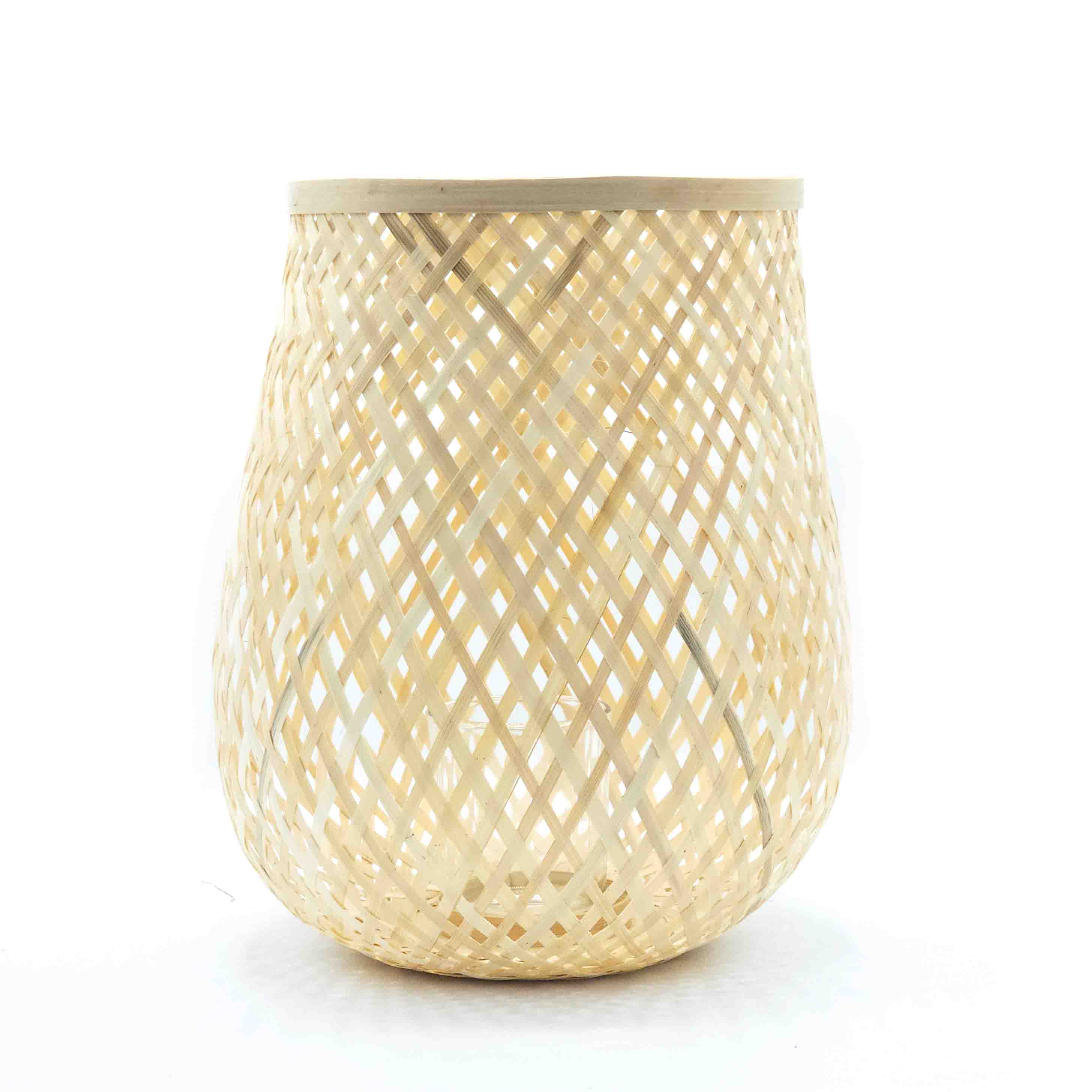 Doğal hasır dokusu ve dengeli formu ile tasarlanan bu mumluk, mum ışığını yumuşatarak ortamda sıcak ve huzurlu bir ambiyans oluşturur. 23 cm çap ve 29 cm yükseklik, mum ışığının çevreye dengeli şekilde yayılmasını sağlayan kompakt ve dekoratif bir yapı sunar.