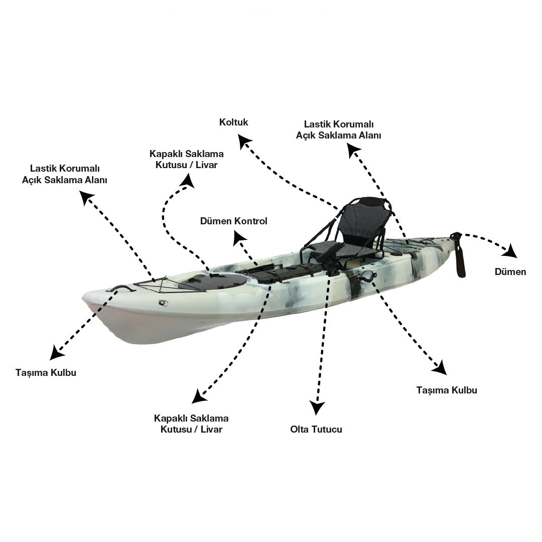 34 kg ağırlık ve taşıma kulpları sayesinde karada taşınması ve suya indirilmesi pratiktir. Set içerisinde bulunan 220 cm kürek, ürünü kullanıma hazır hale getirirken olta tutucu ve koltuk balıkçılık sırasında daha düzenli ve konforlu bir kullanım düzeni sağlar.