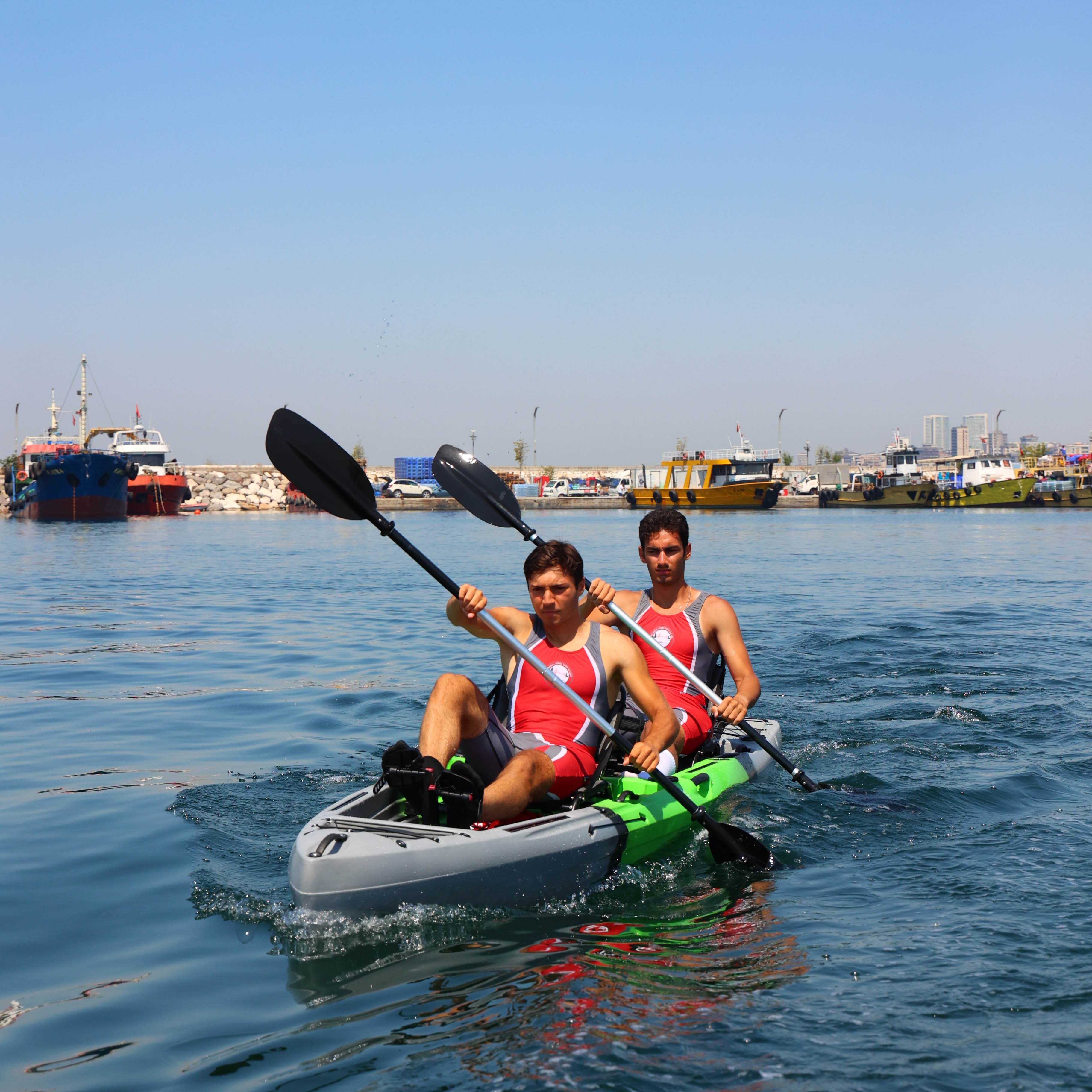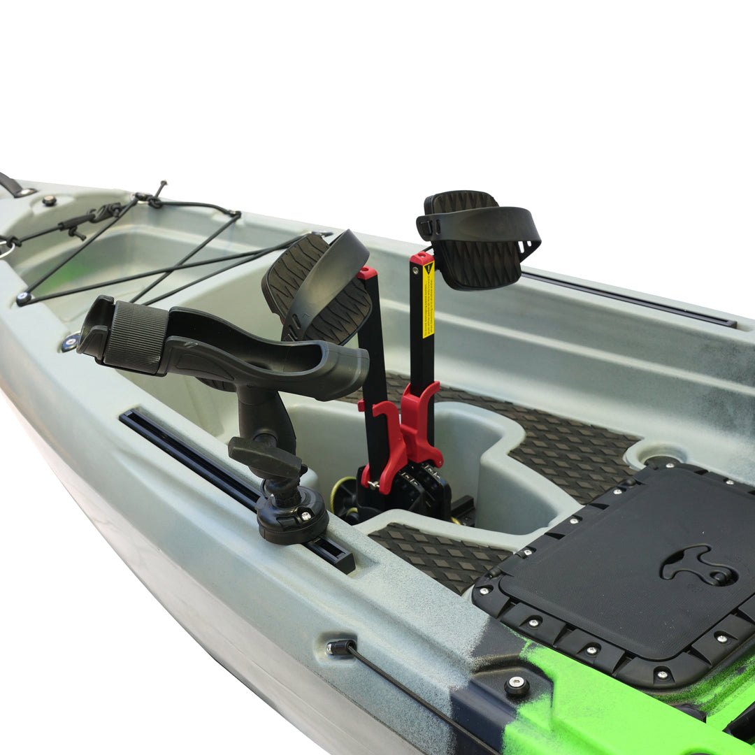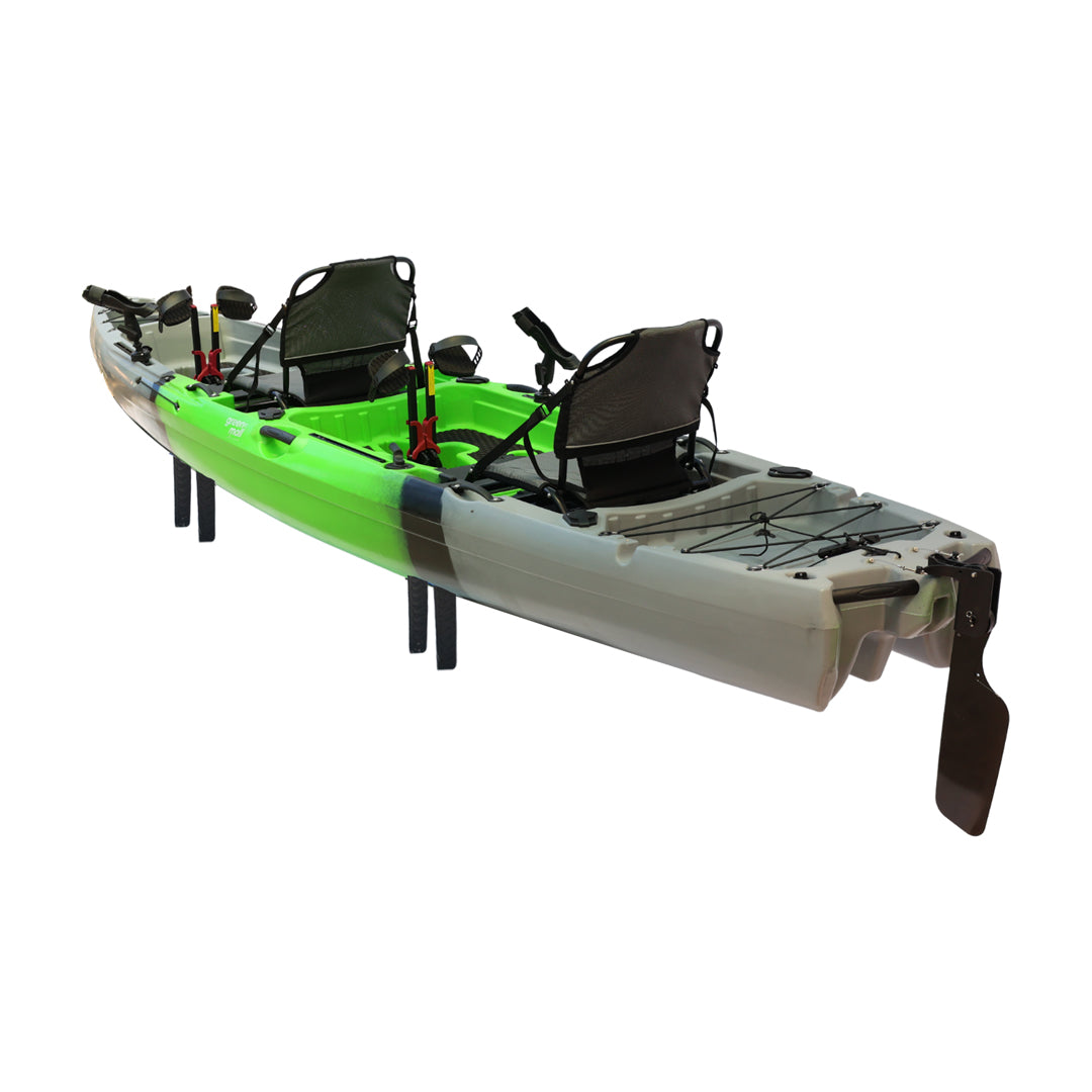İki kişilik kullanım için tasarlanan bu model, çift pedal sistemi ve çift kürek yapısı sayesinde iki kullanıcıyla eş zamanlı kullanım imkânı sunar. Ön bölümde yer alan kapaklı saklama kutusu ve arka tarafta bulunan lastik korumalı açık saklama alanı, balıkçılık ekipmanlarının düzenli ve erişilebilir şekilde taşınmasına yardımcı olur. Ayrıca 2 adet livar ve 4 adet montaj yuvası, aksesuar ve ekipman yerleşimini daha esnek biçimde planlamaya olanak tanır.