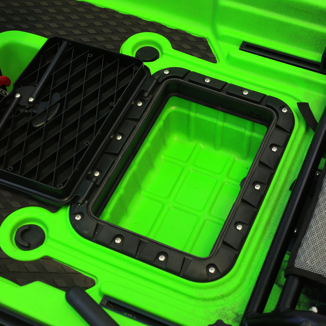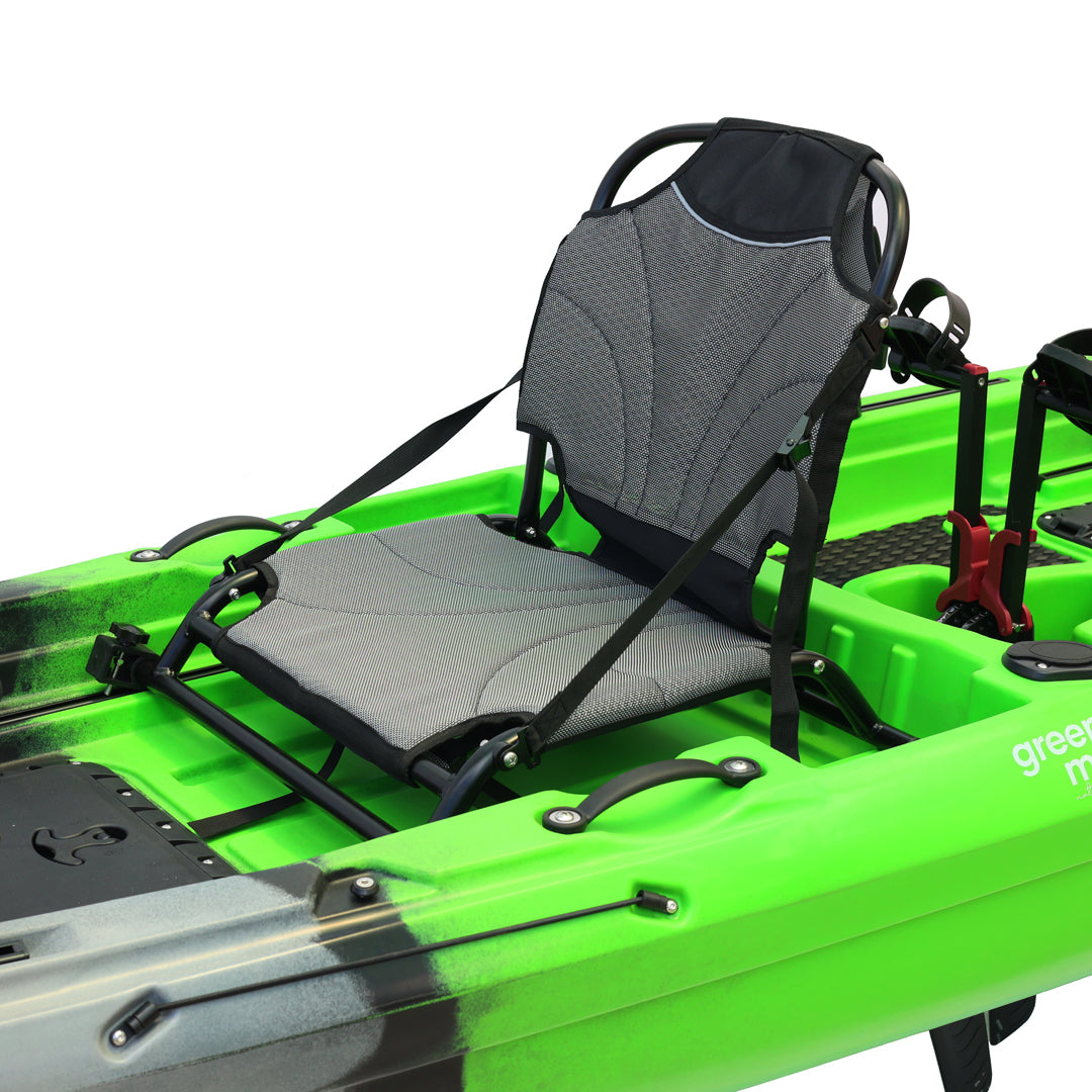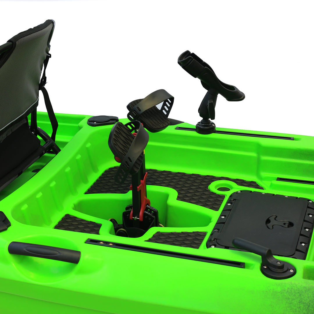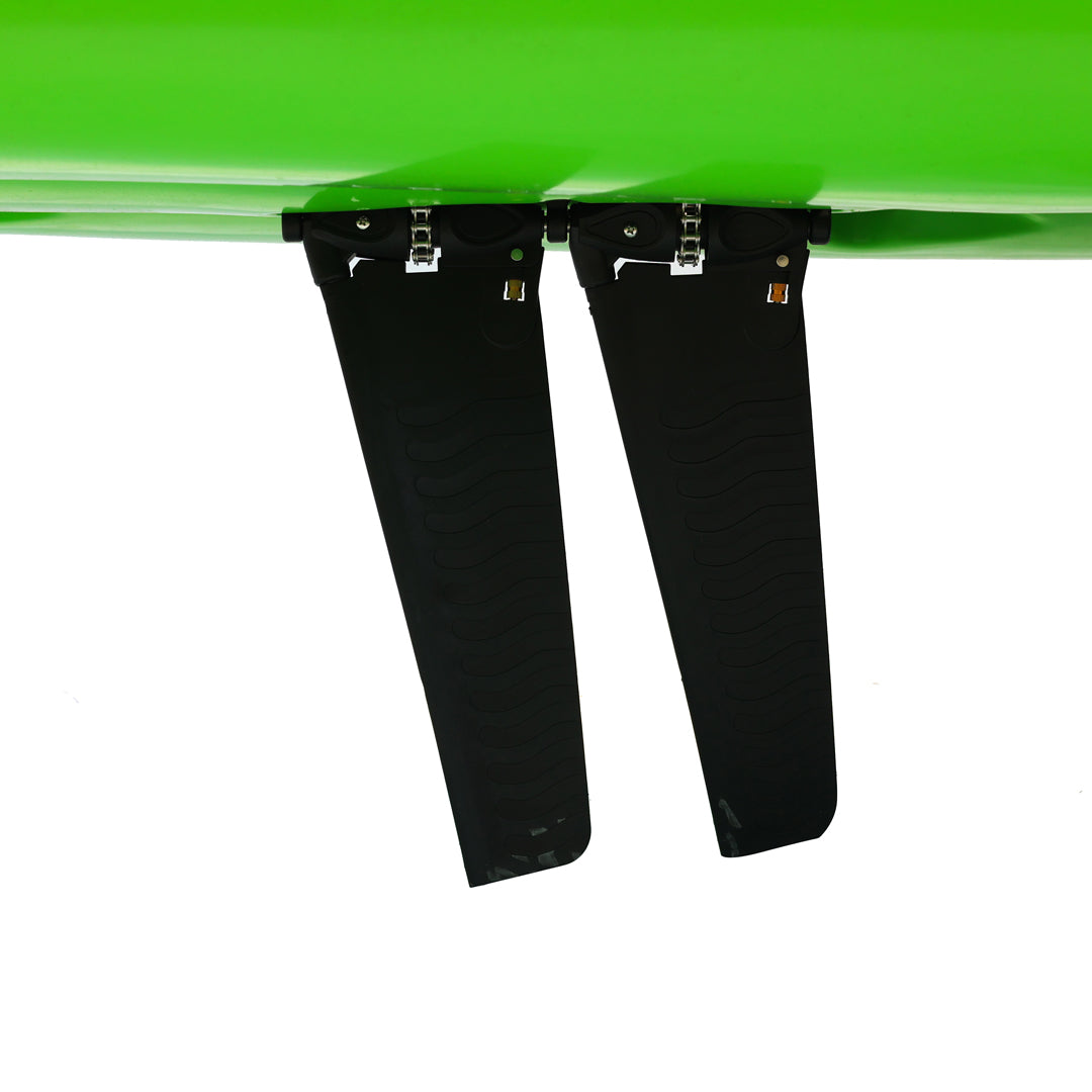İki kişilik kullanım için tasarlanan bu model, çift pedal sistemi ve çift kürek yapısı sayesinde iki kullanıcıyla eş zamanlı kullanım imkânı sunar. Ön bölümde yer alan kapaklı saklama kutusu ve arka tarafta bulunan lastik korumalı açık saklama alanı, balıkçılık ekipmanlarının düzenli ve erişilebilir şekilde taşınmasına yardımcı olur. Ayrıca 2 adet livar ve 4 adet montaj yuvası, aksesuar ve ekipman yerleşimini daha esnek biçimde planlamaya olanak tanır.