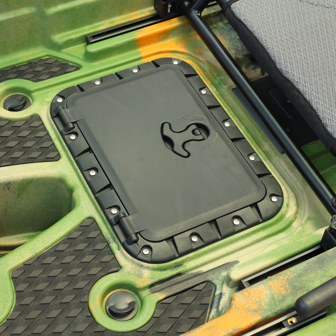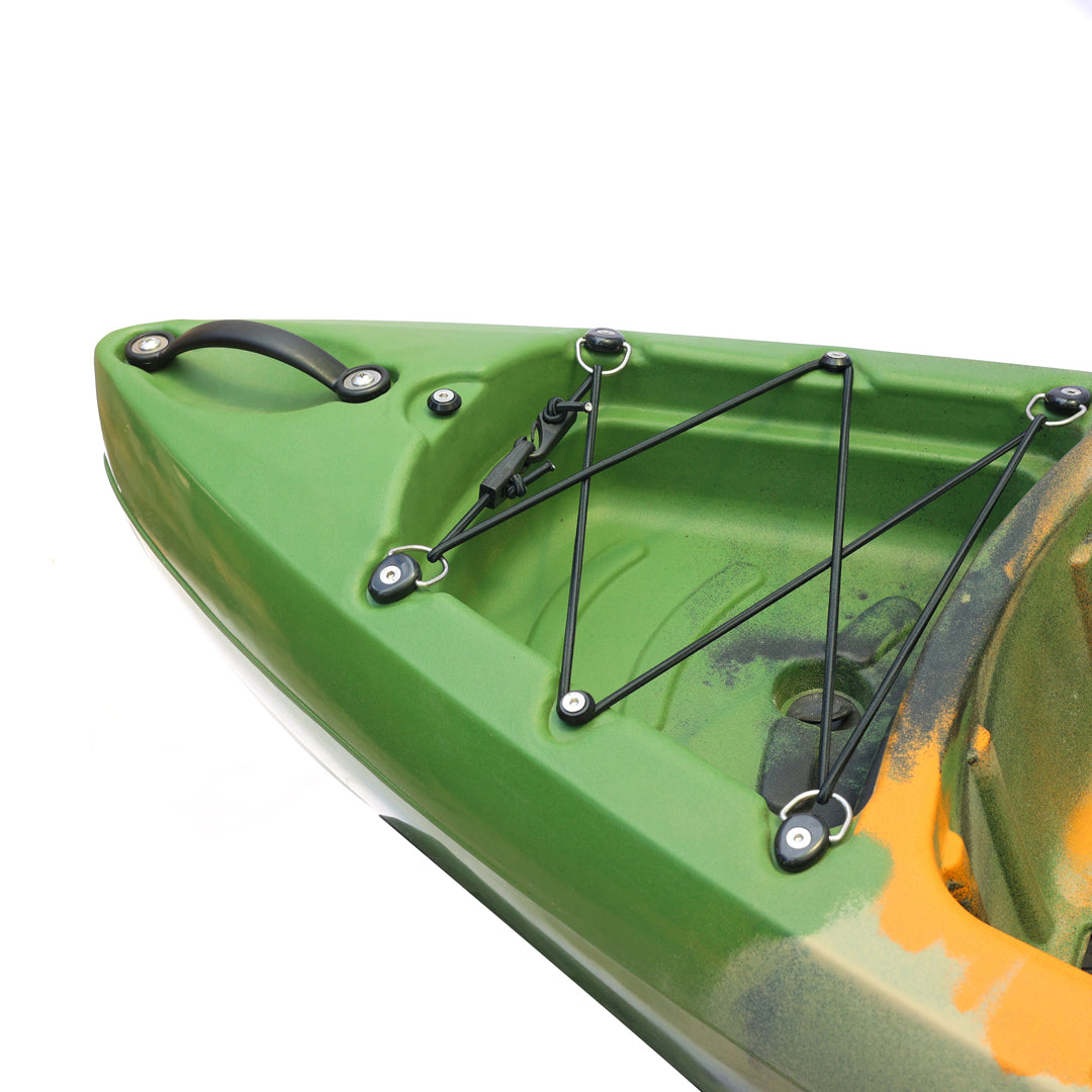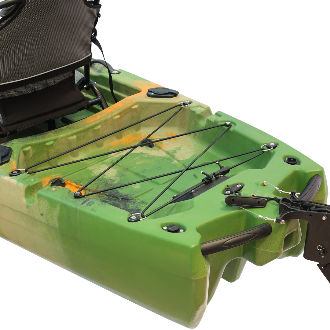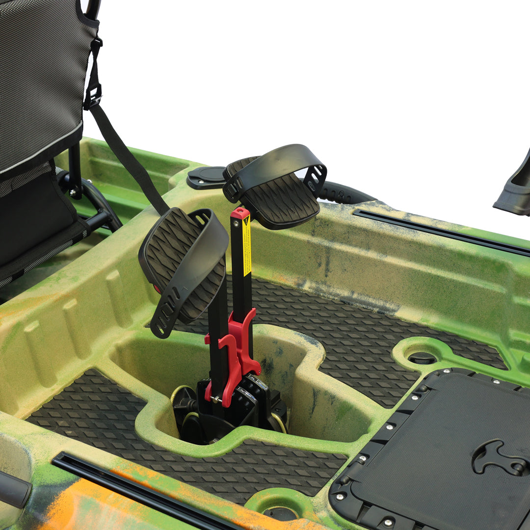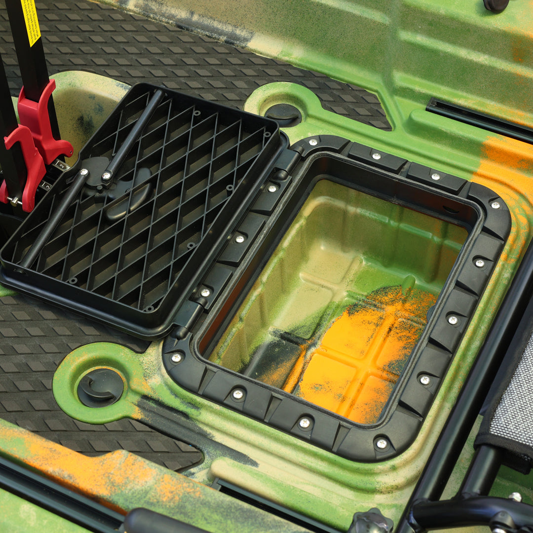 İki kişilik kullanım için tasarlanan bu model, çift pedal sistemi ve çift kürek yapısı sayesinde iki kullanıcıyla eş zamanlı sürüş ve manevra imkânı sunar. Ön bölümde yer alan kapaklı saklama kutusu ve arka tarafta bulunan lastik korumalı açık saklama alanı, balıkçılık ekipmanlarının düzenli ve erişilebilir şekilde taşınmasına yardımcı olur. Ayrıca 2 adet livar ve 4 adet montaj yuvası, aksesuar ve ekipman yerleşimini daha esnek biçimde planlamaya olanak tanır.