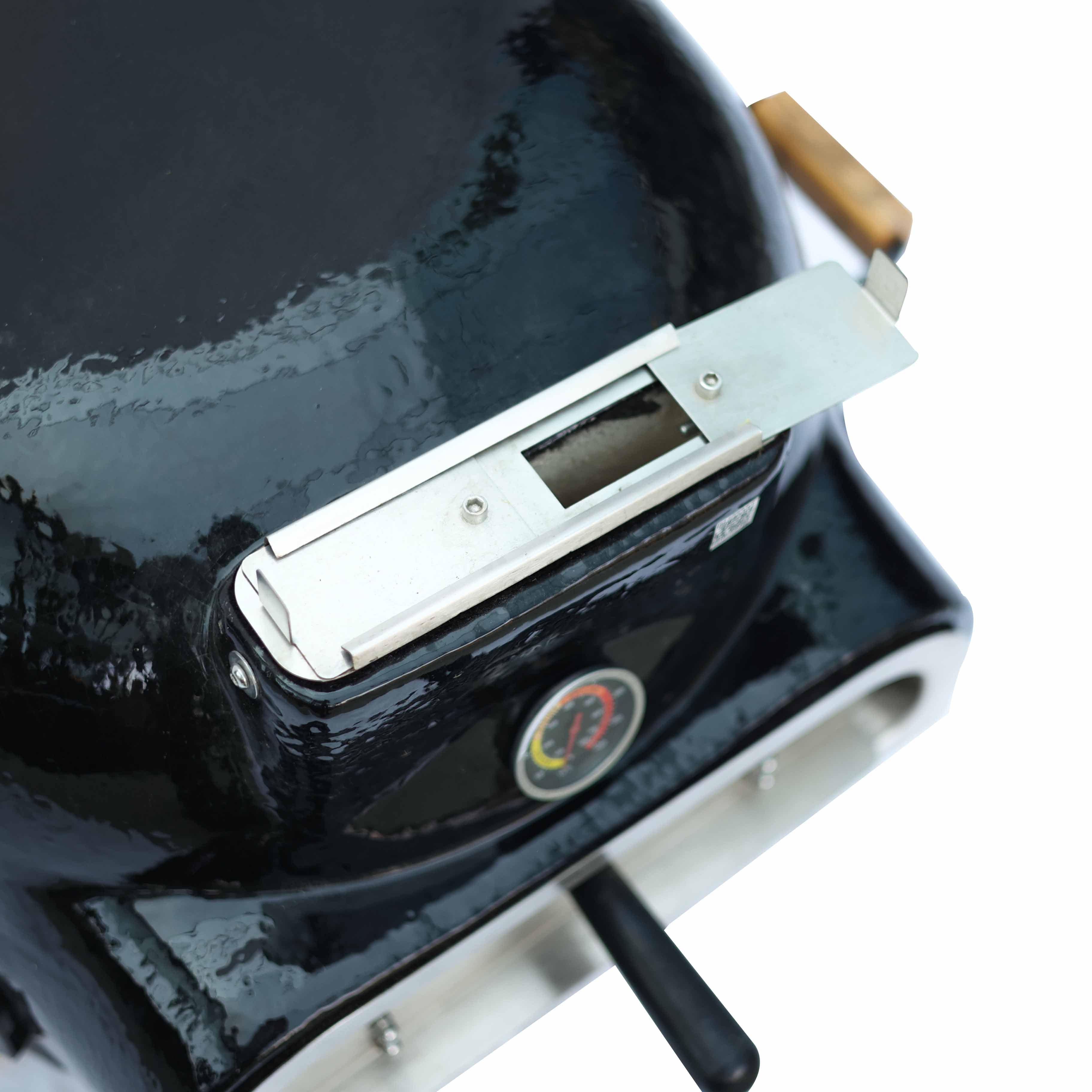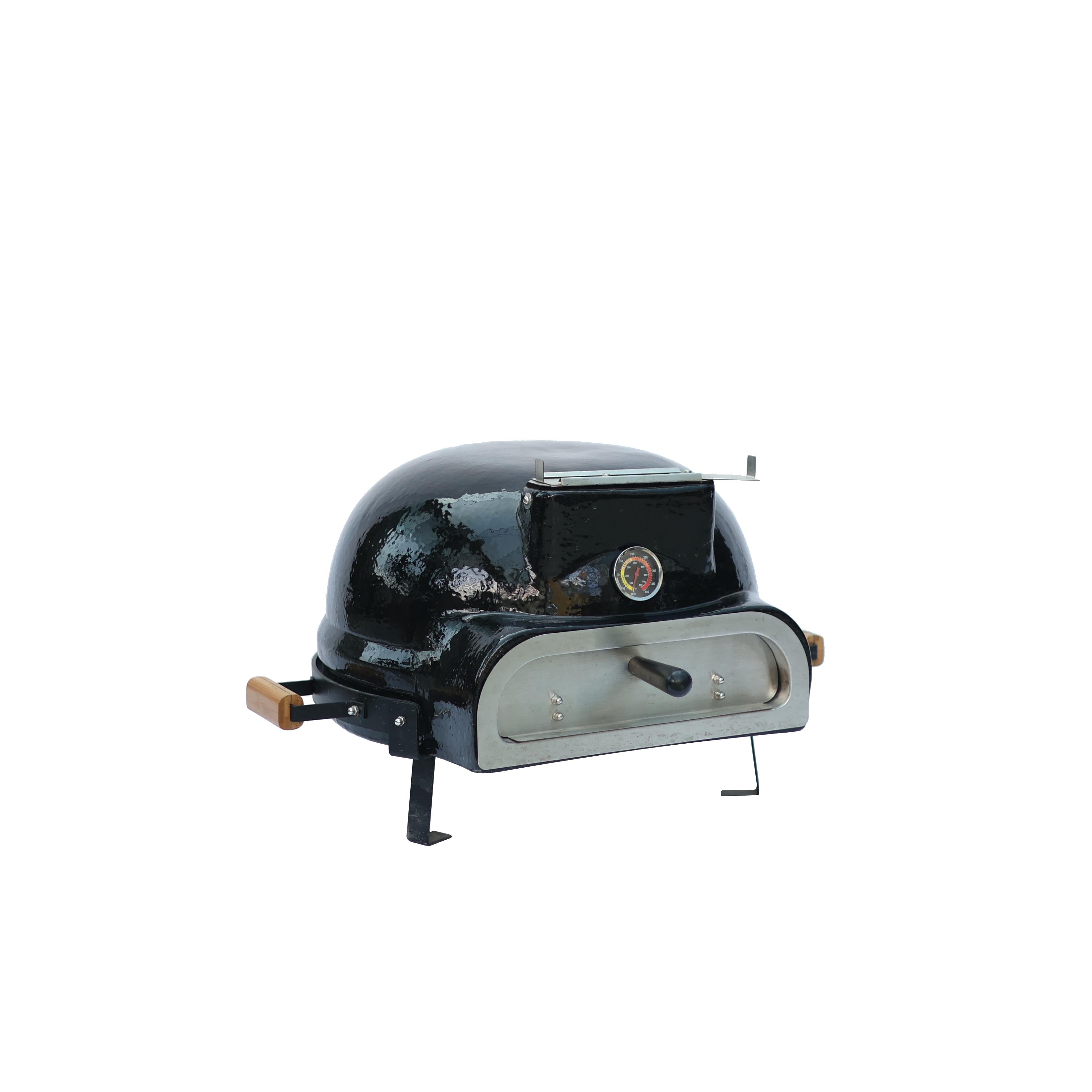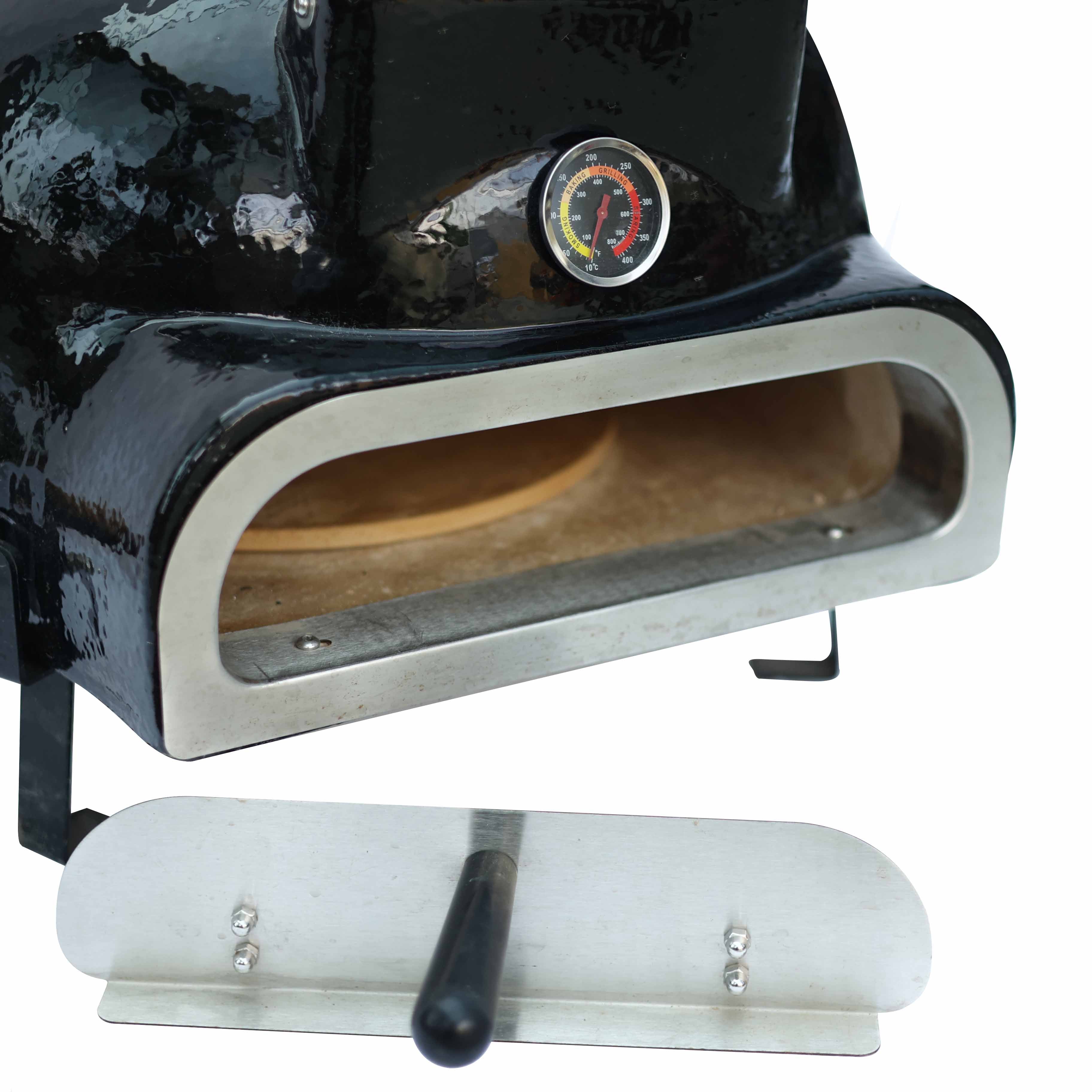 Üzerinde yer alan entegre termometre, pişirme süreci boyunca iç sıcaklığın takip edilmesini kolaylaştırır. Kademeli ızgara sistemi, yiyeceklerin ateşe olan mesafesinin ihtiyaca göre ayarlanmasını sağlayarak farklı pişirme yöntemlerine uyum sunar. Seramik yapısı sayesinde fırın, dengeli ve stabil bir ısı dağılımı oluşturarak pişirme sürecini destekler.