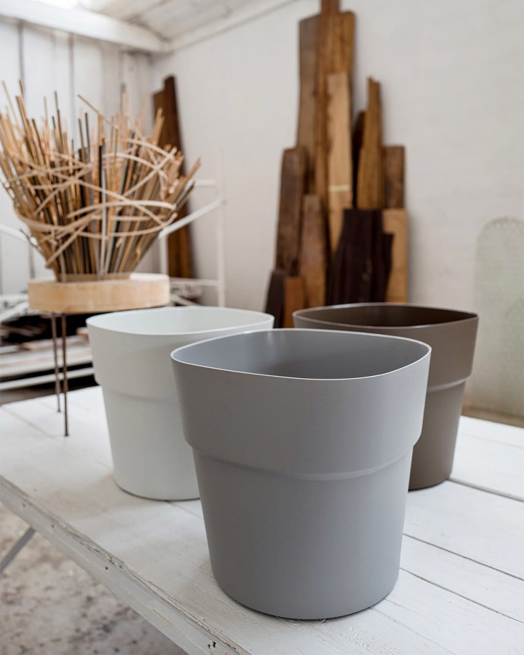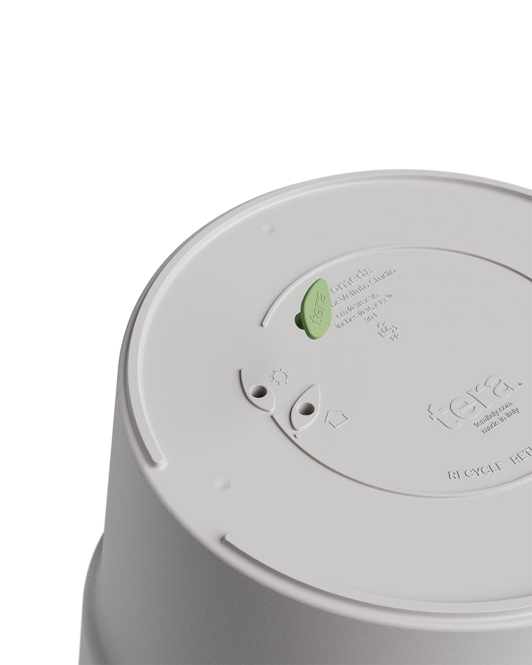 Alt kısımda bulunan yaprak şeklindeki drenaj tıpası, bakım sırasında su yönetimini daha kontrollü hâle getirmeye yardımcı olur. Geri dönüştürülmüş plastik malzemesi ve bej rengi, doğal ve sade bir görünüm sunarken; hafif gövde yapısı, ürünün taşınmasını ve bakım süreçlerini kolaylaştırır.