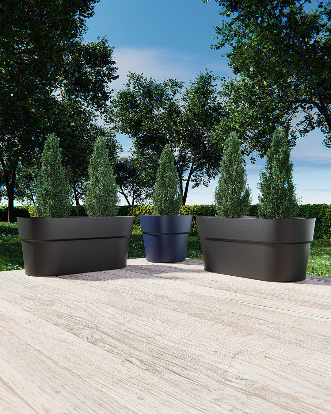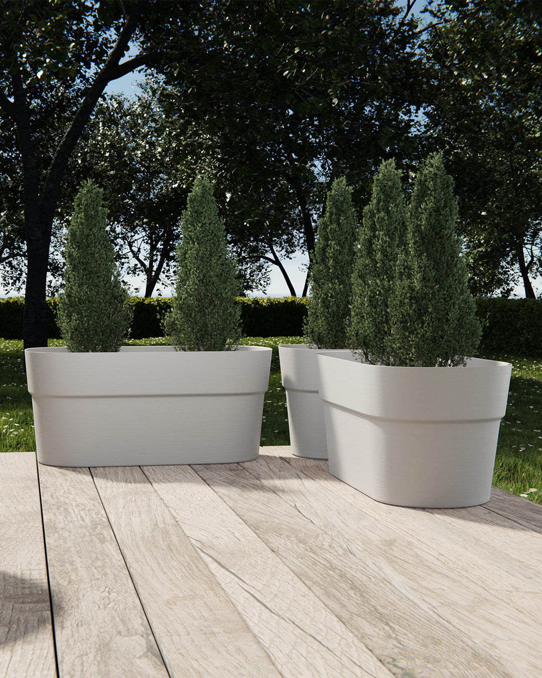 Modern formu ve dengeli ölçüleriyle öne çıkan bu saksı, 78 × 38 × 35 cm ölçüleri ve 103 litre hacmi ile bitkiler için geniş bir kullanım alanı sunar. Üst bölümde genişleyen formu, bitkilerin yerleşimini kolaylaştırırken dekorasyonda modern ve dengeli bir görünüm oluşturur.
