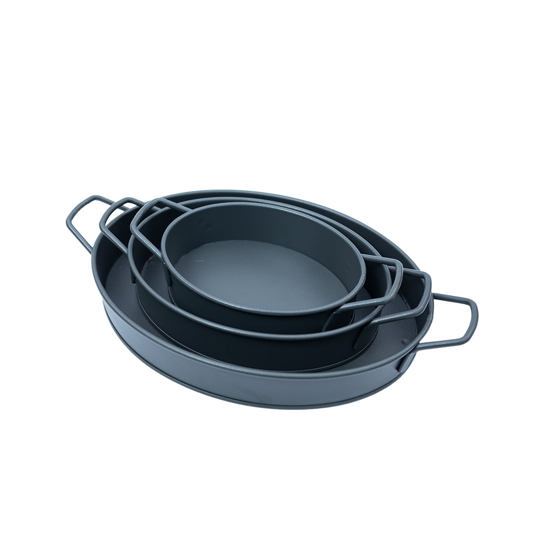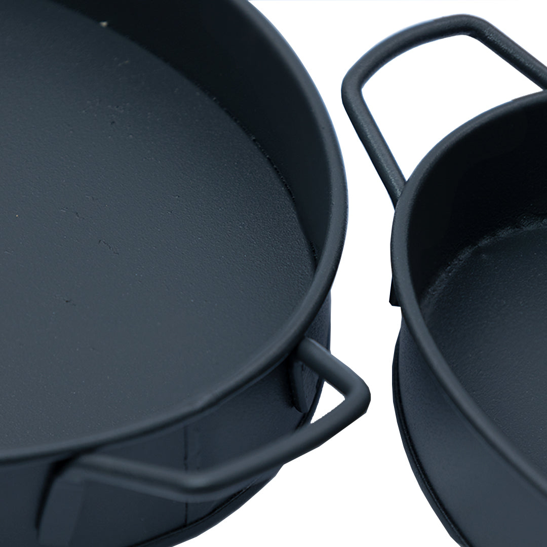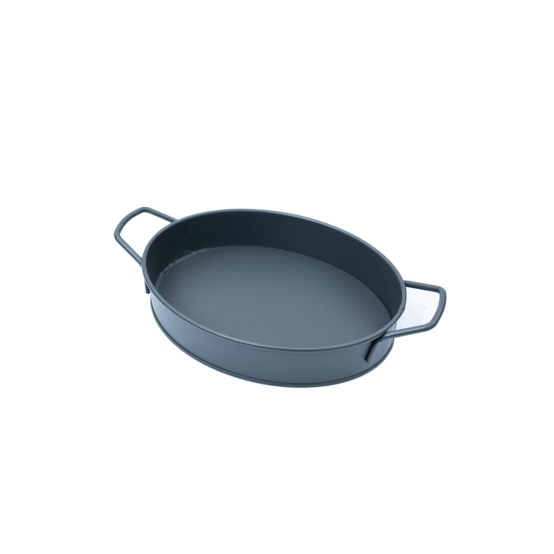 Oval formu ve modern siyah rengi, farklı masa düzenleri ve dekorasyon stilleriyle kolay uyum sağlar. Her iki yanında bulunan taşıma kulpları, servis sırasında tepsinin rahat ve güvenli şekilde taşınmasına yardımcı olur.