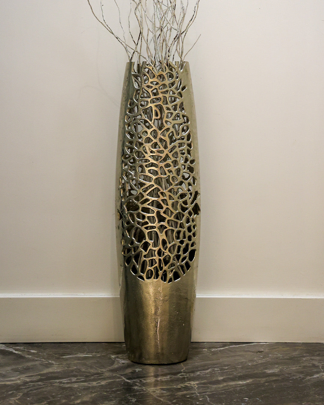 Modern yüzey dokusu ve geometrik desen detaylarıyla tasarlanan bu model, büyük boy ölçüleri sayesinde mekânda güçlü bir dekoratif etki oluşturmayı hedefler. 75 cm yükseklik ve 25 cm genişlik ölçüleri, özellikle geniş yaşam alanlarında tek başına dikkat çekici bir vurgu oluşturabilecek bir form sunar.
