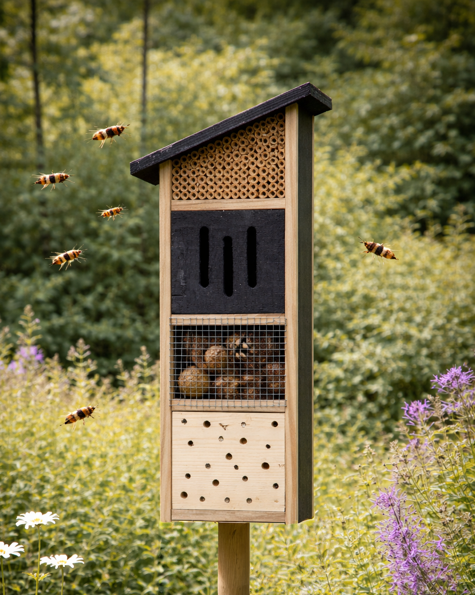 Faydalı böceklerin güvenli şekilde barınabileceği ve kışlayabileceği alanlar oluşturmak amacıyla tasarlanan bu ürün, şehirleşmenin artmasıyla birlikte azalan doğal yuvalama alanlarına işlevsel bir alternatif sunar. Balkonlar ve şehir bahçeleri gibi kentsel ortamlarda, böceklerin yaşam döngülerini sürdürebilmeleri için uygun bir ortam oluşturur.