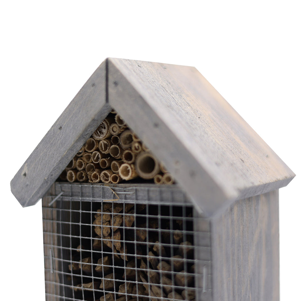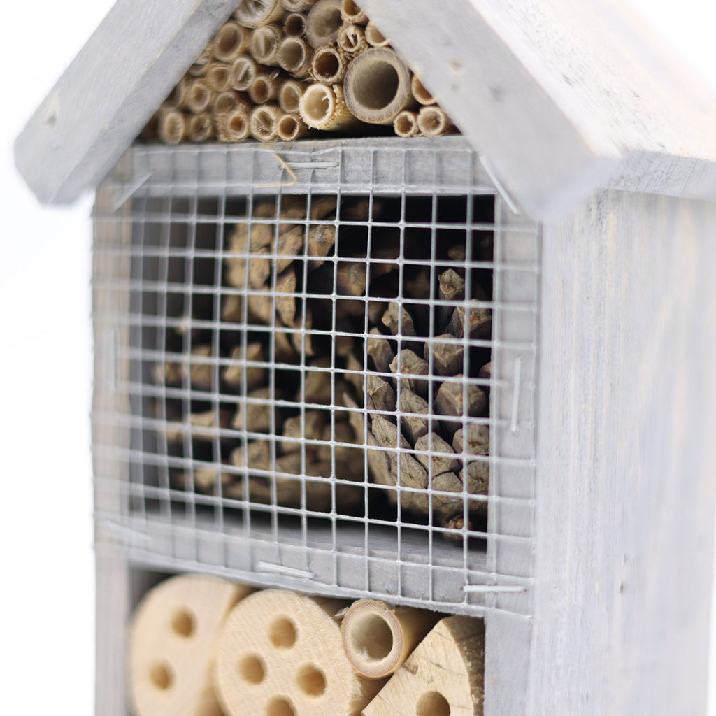 Böcek oteli, faydalı böcekler ve güvenli kışlama için bir yuvalama alanı sağlar.