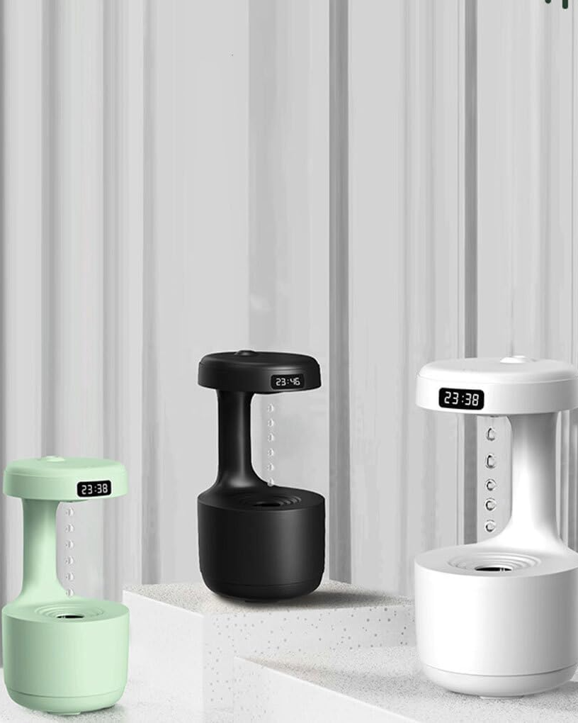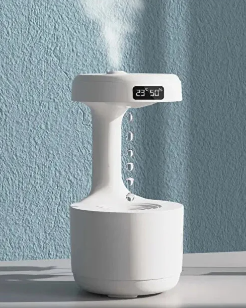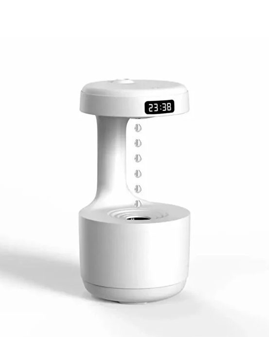 Anti Yerçekimi Su Damlası Buhar Makinesi, klasik hava nemlendiricilerden farklı olarak su damlalarının yukarı doğru akıyormuş gibi görünen özel efektiyle öne çıkar. Bu ilgi çekici görsel, hem modern bir dekoratif obje etkisi yaratır hem de bulunduğu ortama estetik bir hava katar.