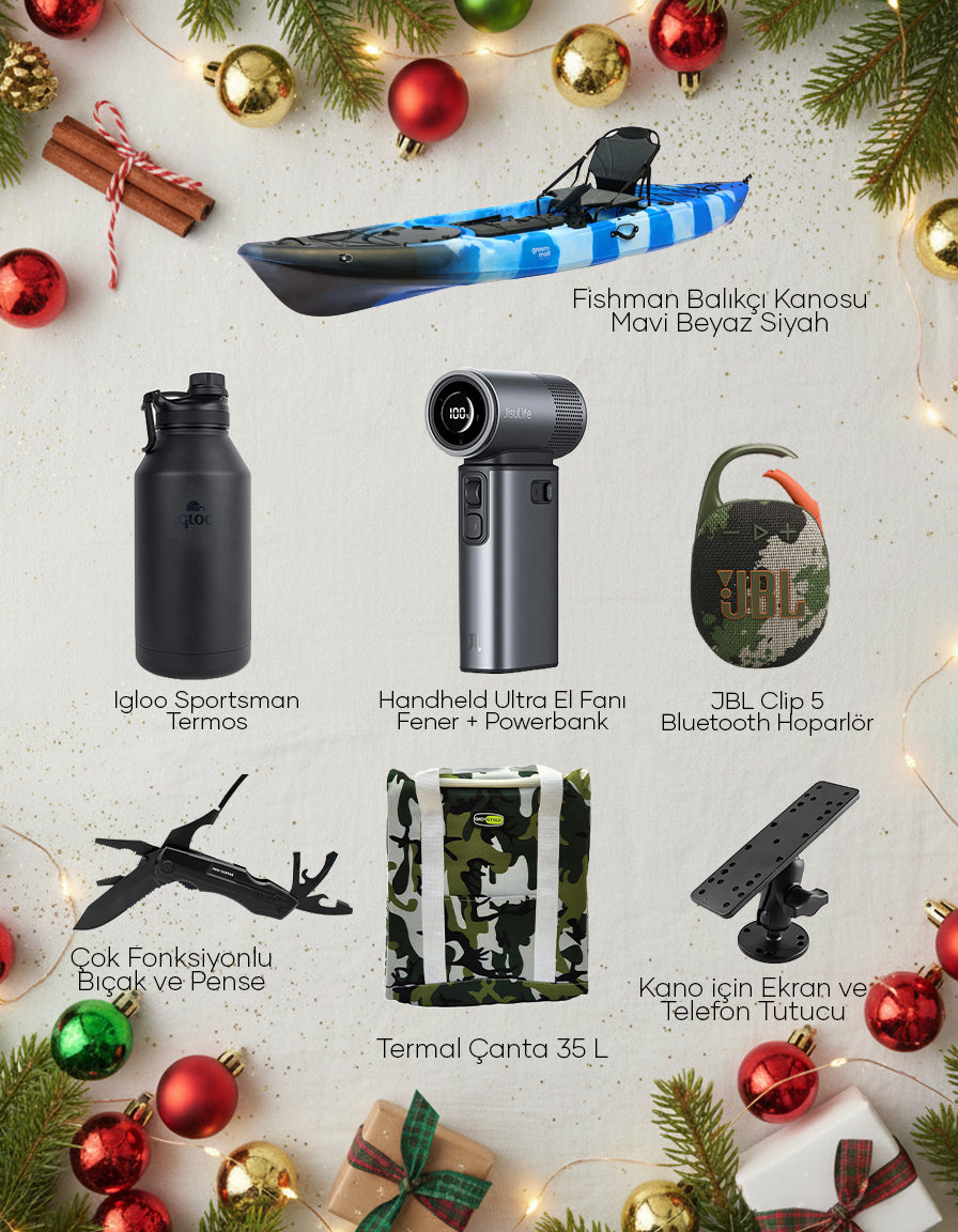 Balıkçılık tutkusunu doğayla birleştirenler için özel olarak hazırlanan Balıkçı Seti, su üstünde konforlu ve güvenli bir deneyim sunacak ekipmanları bir araya getirir. Setin merkezinde yer alan Fishman Balıkçı Kanosu, tek kişilik kullanıma uygun, yüksek taşıma kapasiteli ve balıkçılık odaklı donanımıyla öne çıkar. Outdoor keyfini tamamlayan teknoloji ve yardımcı ürünlerle birlikte, tam kapsamlı bir balıkçılık paketi sunar.