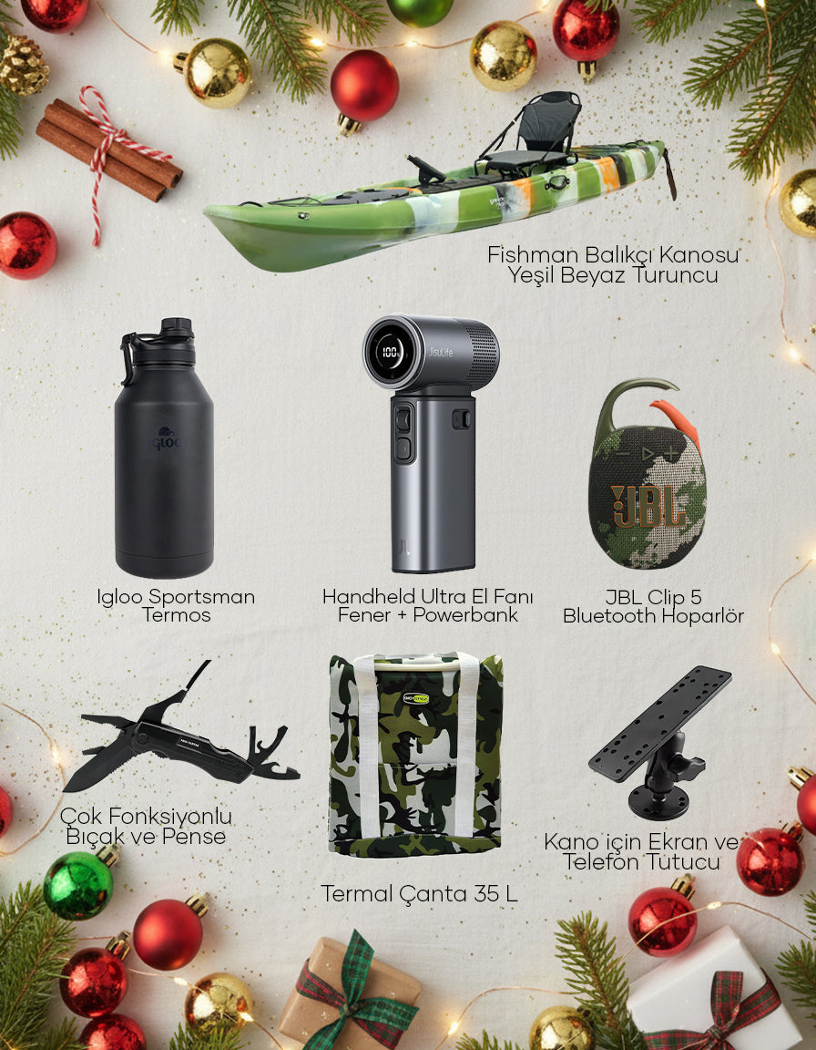 Balıkçılık tutkusunu doğayla birleştirenler için özel olarak hazırlanan Balıkçı Seti, su üstünde konforlu ve güvenli bir deneyim sunacak ekipmanları bir araya getirir. Setin merkezinde yer alan Fishman Balıkçı Kanosu, tek kişilik kullanıma uygun, yüksek taşıma kapasiteli ve balıkçılık odaklı donanımıyla öne çıkar. Outdoor keyfini tamamlayan teknoloji ve yardımcı ürünlerle birlikte, tam kapsamlı bir balıkçılık paketi sunar.