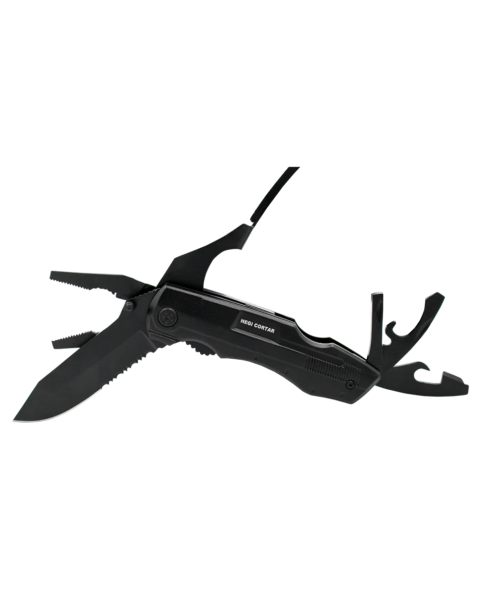 5 ana işlev: Bıçak, testere bıçağı, pense, şişe açacağı, konserve açacağı
