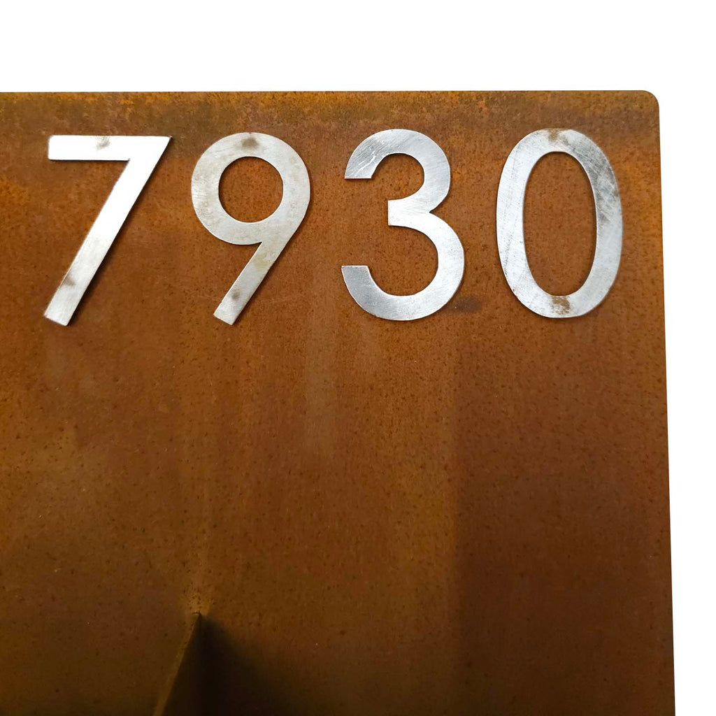 Corten Numaralı Modern Saksı, şık alüminyum adres numaralarıyla evinizin cephesine zarafet ve stil katar.