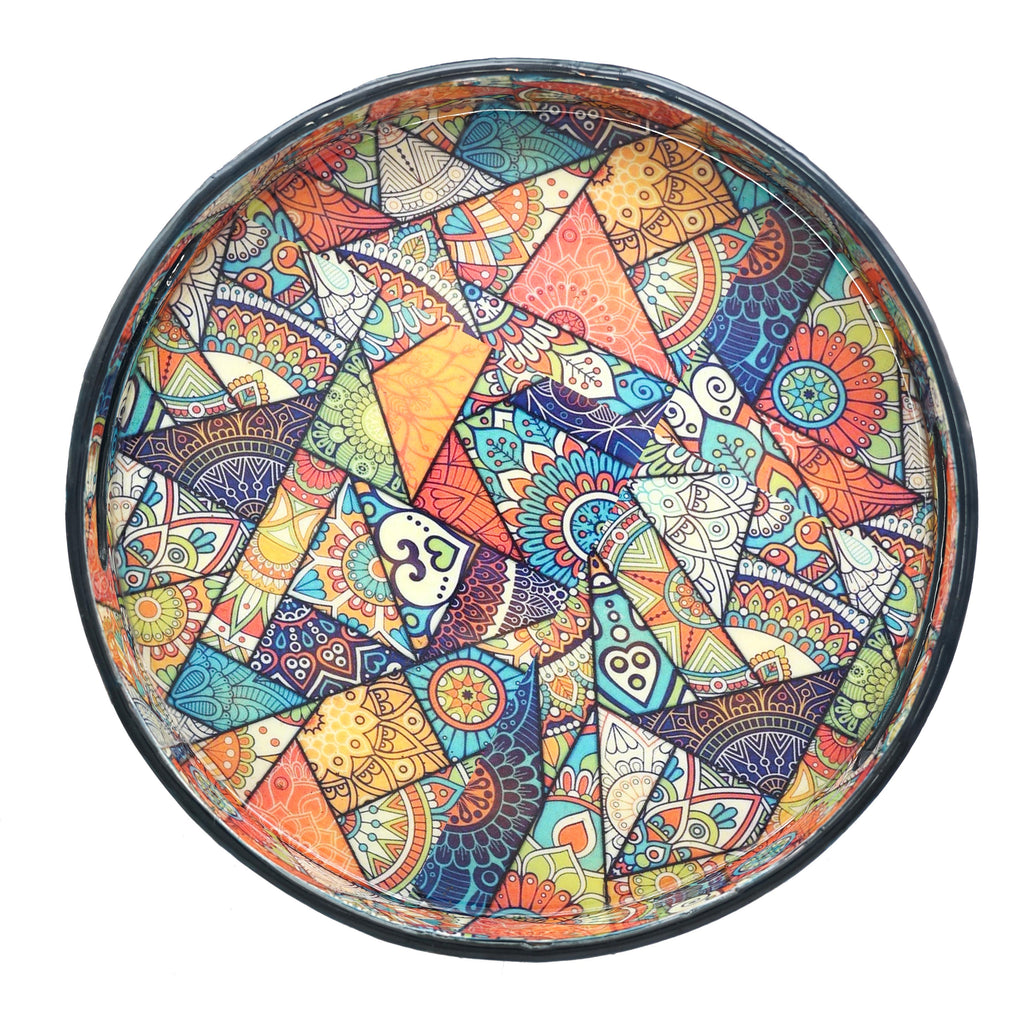 Ürün Adı: Desenli Yuvarlak Ahşap Tepsi Büyük Boy