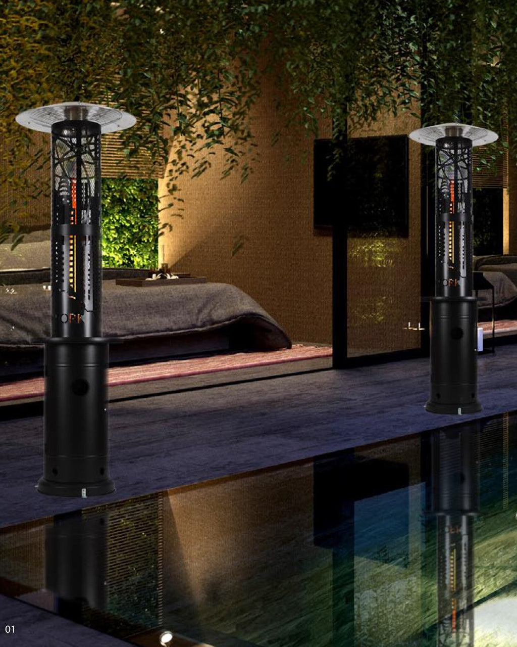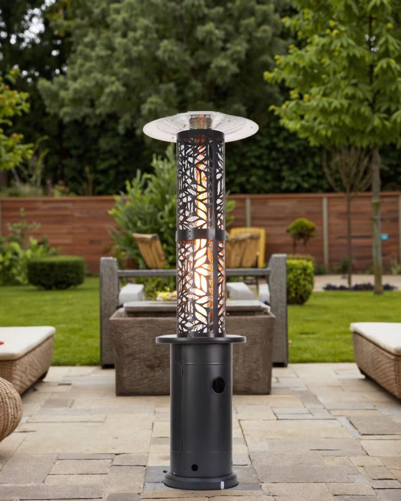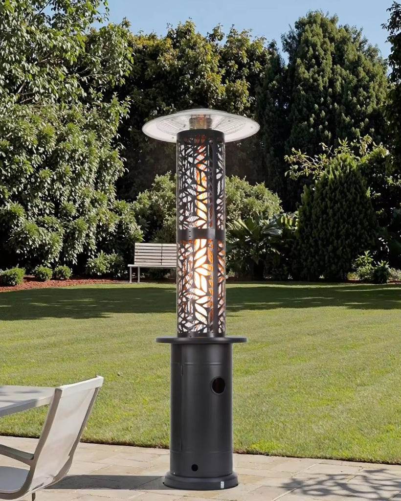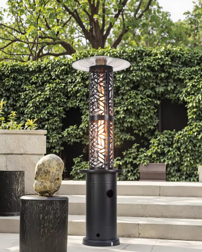 Şık siyah rengi, modern tasarımı ve yüksek performansı ile Flame Tower - Gazlı Teras Isıtıcısı, açık alanlarınızı dört mevsim konforlu ve kullanılabilir hale getirir."