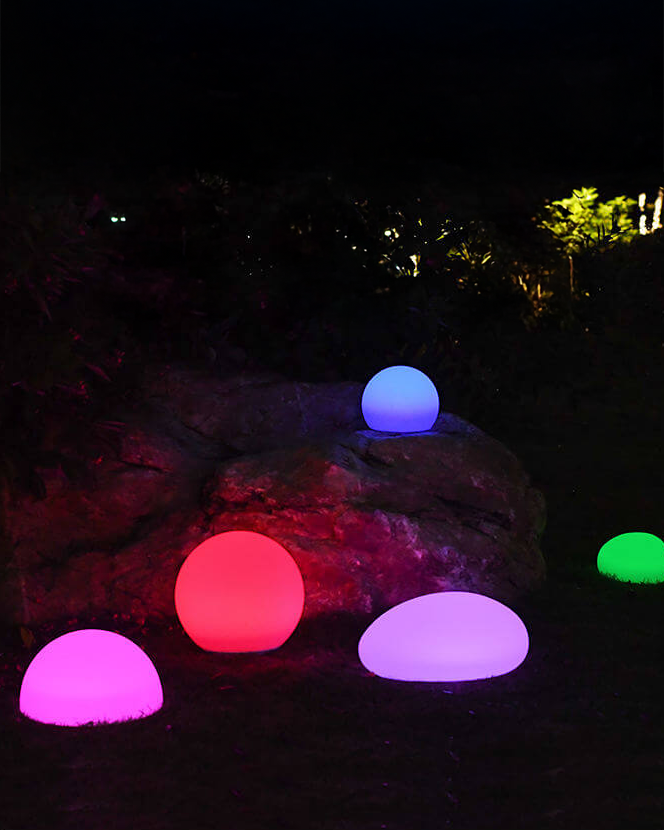 Çok renkli LED ışık seçenekleri, çim ve bahçe düzenlemelerinde farklı atmosferler oluşturmanıza yardımcı olur. Gün ışığı sensörü sayesinde ortam karardığında otomatik olarak devreye girer. 1500 mAh pil kapasitesi, tam şarj sonrası 8–12 saat aydınlatma süresi sağlar.