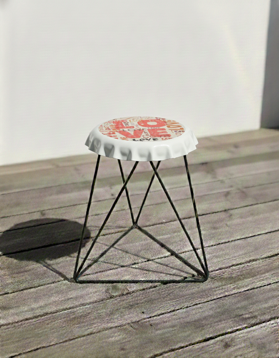 Retro romantizmi ve pop-art estetiğini buluşturan Love Metal Tabure, mekâna sıcak, samimi ve enerjik bir karakter katar. Üst yüzeydeki Love temalı görsel, kalıcı UV baskı ile uygulanmıştır; renkler uzun süre canlı kalır, silinmez ve solmaz.