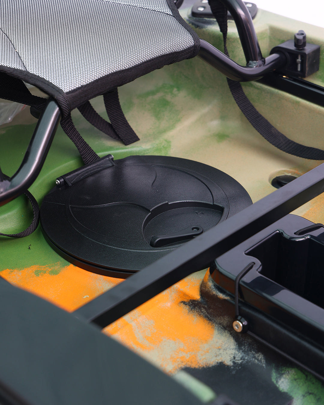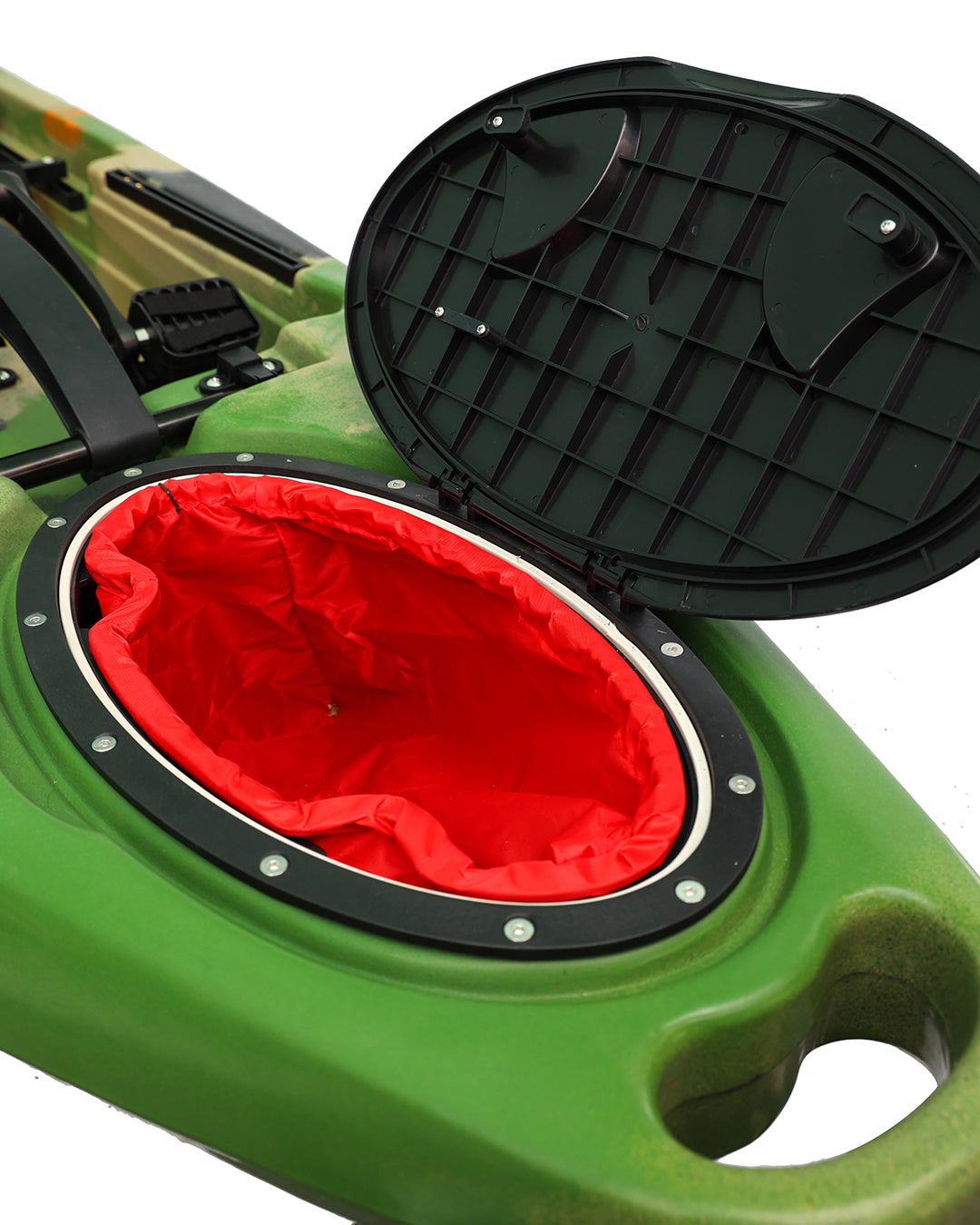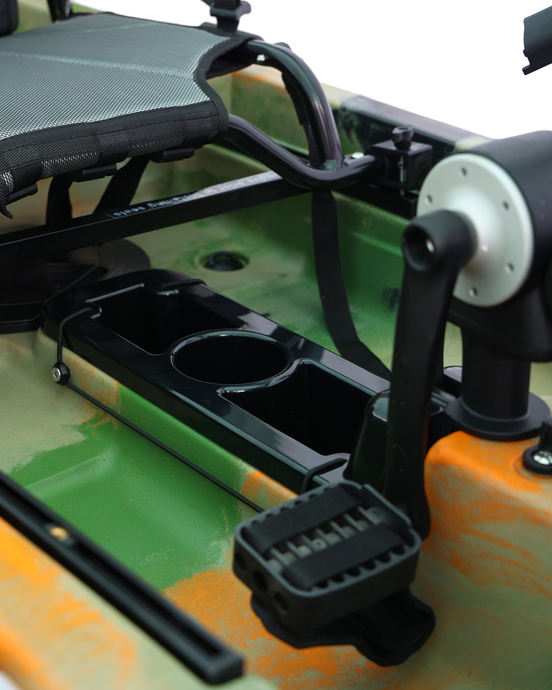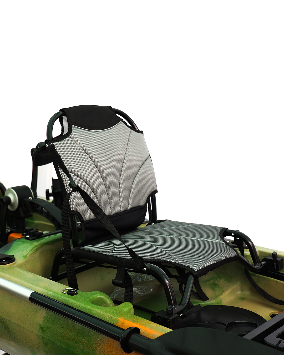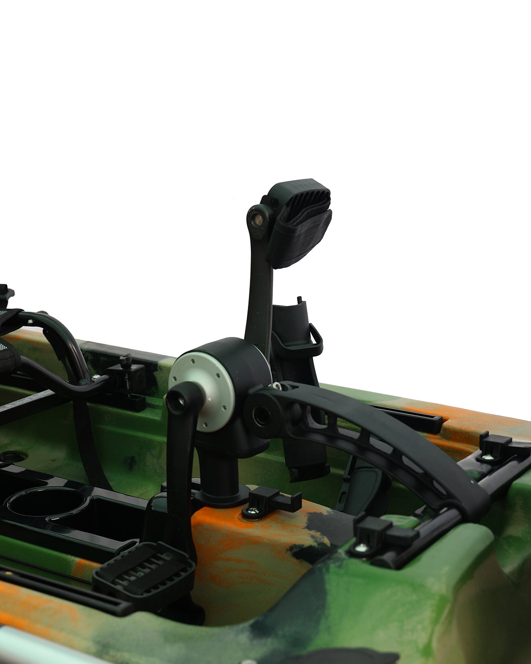 Dönen pervaneli pedal sistemleri ve dümen sistemi, kullanım sırasında yön kontrolü ve ilerleme performansını destekler. H Track bağlantı noktaları, aksesuarların farklı senaryolara göre konumlandırılmasını kolaylaştırır. Kapaklı saklama alanı, ekipmanların düzenli şekilde muhafaza edilmesine yardımcı olur.