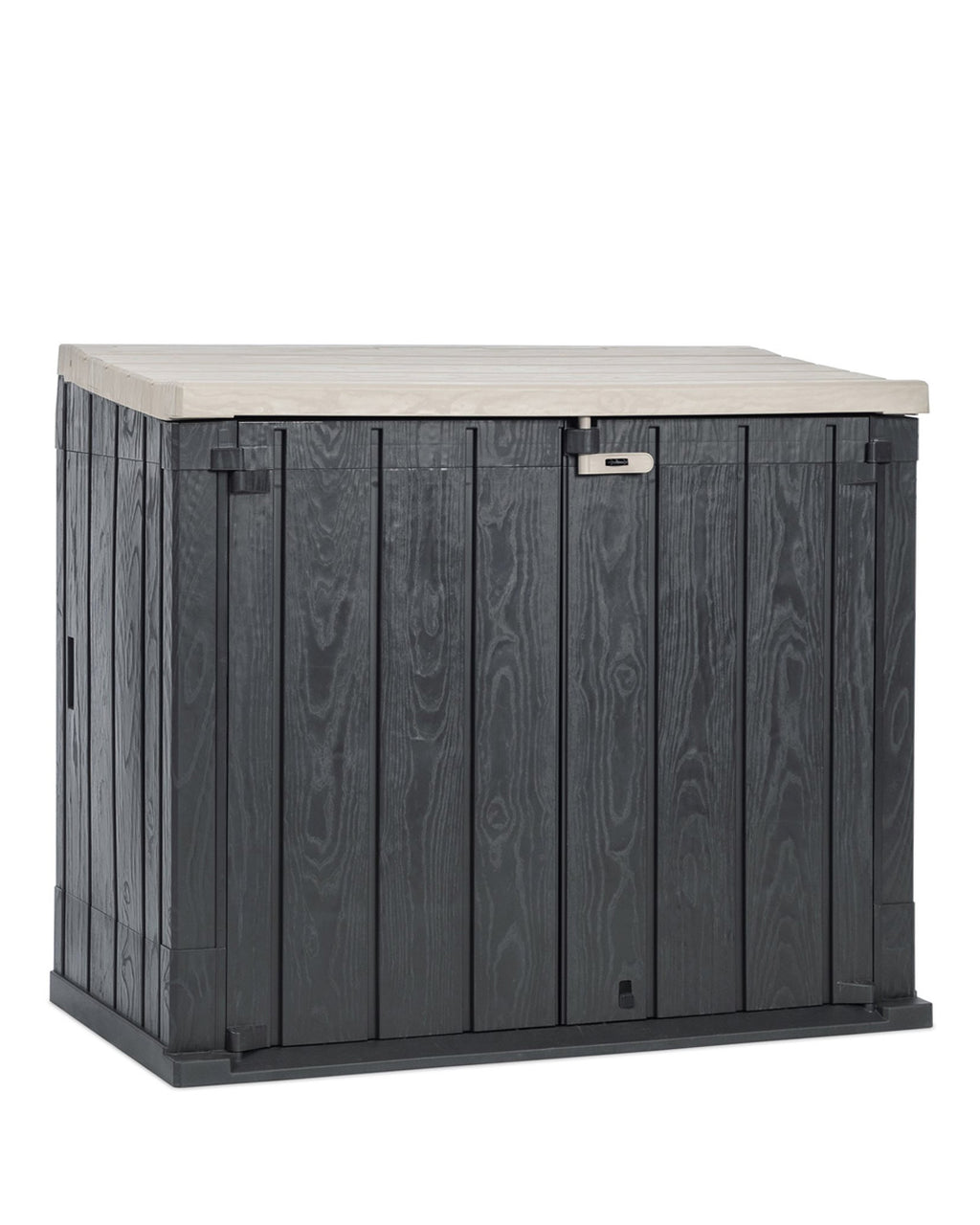 Dayanıklı plastik yapısı, ürünü dört mevsim dış mekân koşullarına uygun hale getirirken; açık gri depolama alanı ve antrasit üst yüzey kombinasyonu modern ve sade bir görünüm kazandırır. Su geçirmez ve kilitlenebilir kapak tasarımı ile güvenli kullanım sağlar. Kolay kurulumu, hafifliği ve pratik temizlenebilir yüzeyi sayesinde uzun süreli ve konforlu bir depolama çözümü sunar.