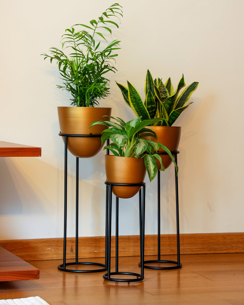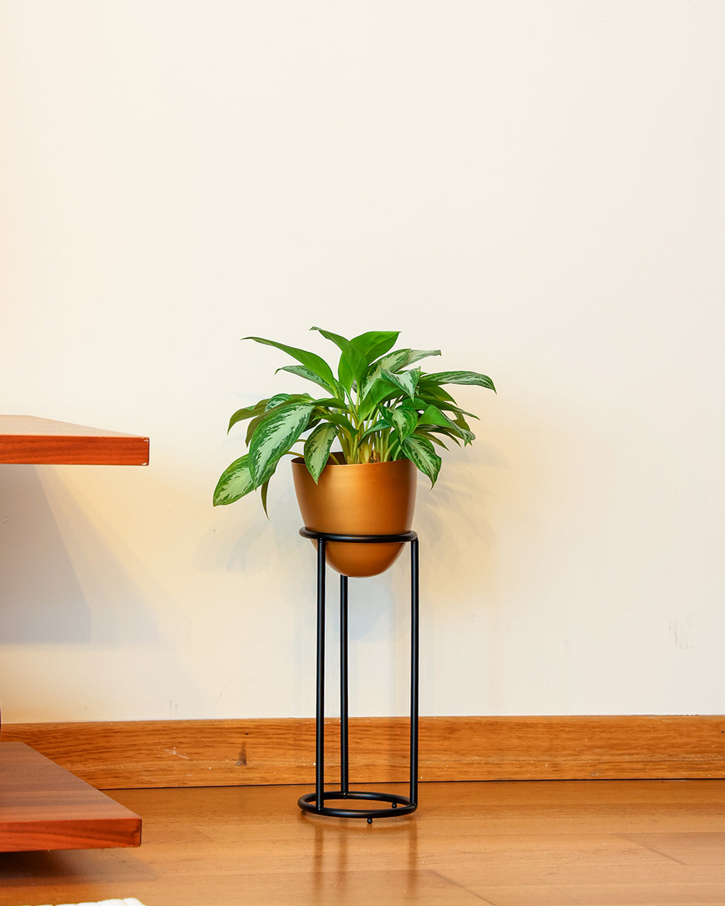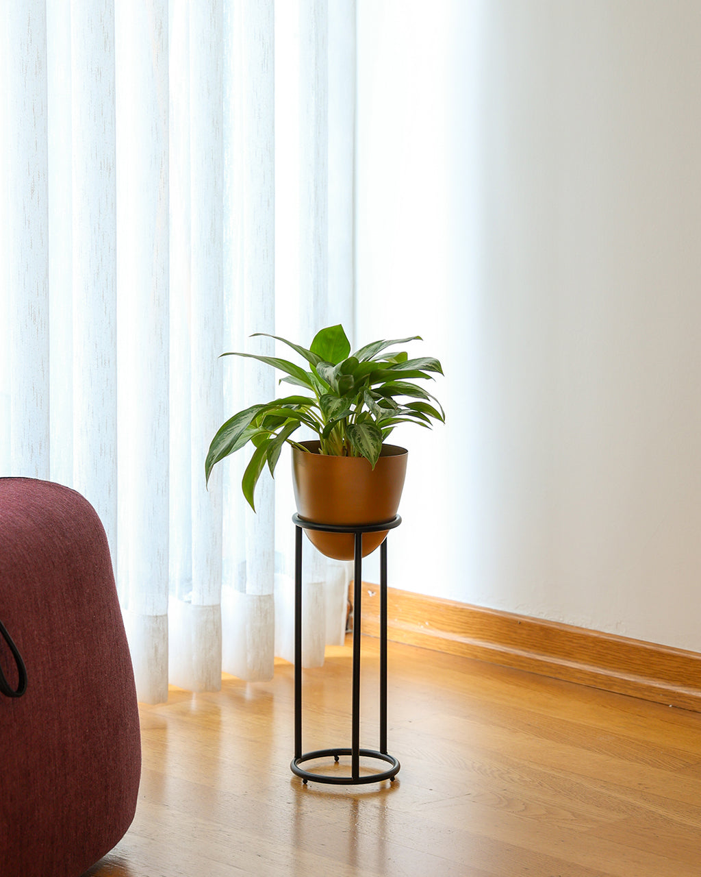 Ayaklı tasarımı sayesinde yeşil dokuları daha görünür bir seviyeye taşıyarak mekânda dengeli ve modern bir duruş oluşturur. 15,5 cm çapı ve 14 cm saksı yüksekliği; küçük–orta boy yeşil dokular, sukulentler ve dekoratif aranjmanlar için ideal bir kullanım sunar. Saksı + ayak toplam 44 cm yüksekliği ile salon, ofis, giriş alanı, balkon veya teras gibi alanlarda yeşil dokularınızı öne çıkaran pratik bir yerleşim imkânı sağlar. Parlak metal yüzeyi, yeşilin doğal dokusunu vurgulayarak bulunduğu ortama şık bir görünüm kazandırır.