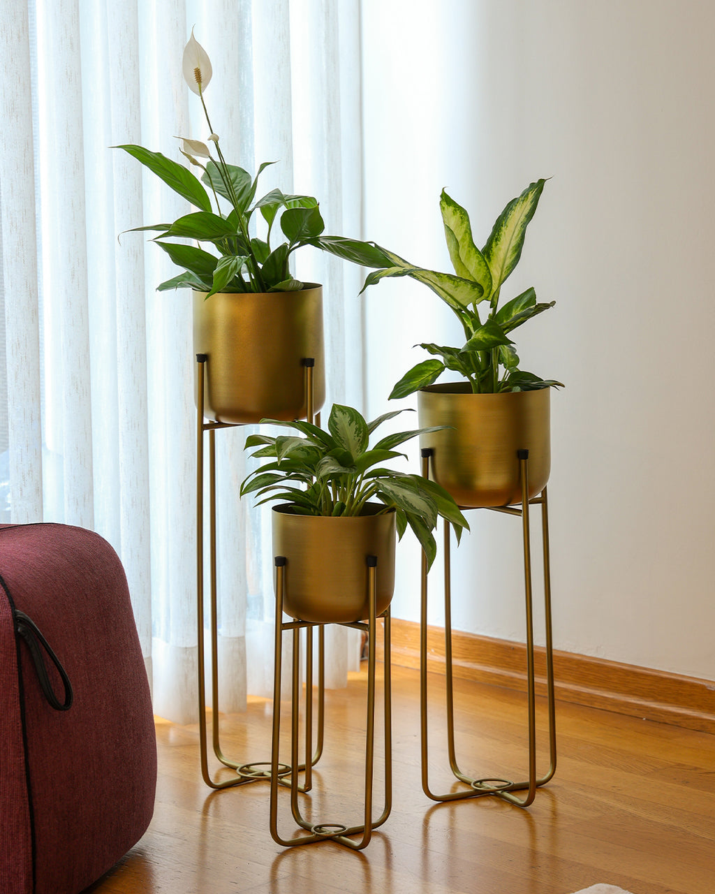 Ayaklı tasarımı sayesinde yeşil dokuları daha görünür bir seviyeye taşıyarak mekânda dengeli ve modern bir duruş oluşturur. 19 cm çapı ve 17 cm saksı yüksekliği; küçük–orta boy yeşil dokular, sukulentler ve dekoratif aranjmanlar için ideal bir kullanım sunar. Saksı + ayak toplam 59,5 cm yüksekliği ile salon, ofis, giriş alanı, balkon veya teras gibi alanlarda bitkilerinizi öne çıkaran pratik bir yerleşim imkânı sağlar. Parlak metal yüzeyi, yeşil dokuların doğal dokusunu vurgulayarak bulunduğu ortama şık bir görünüm kazandırır.